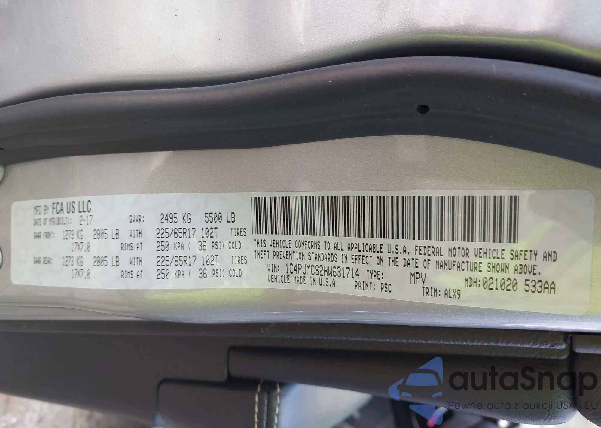 LOT: 43279912 VIN: 1C4PJMCS2HW631714