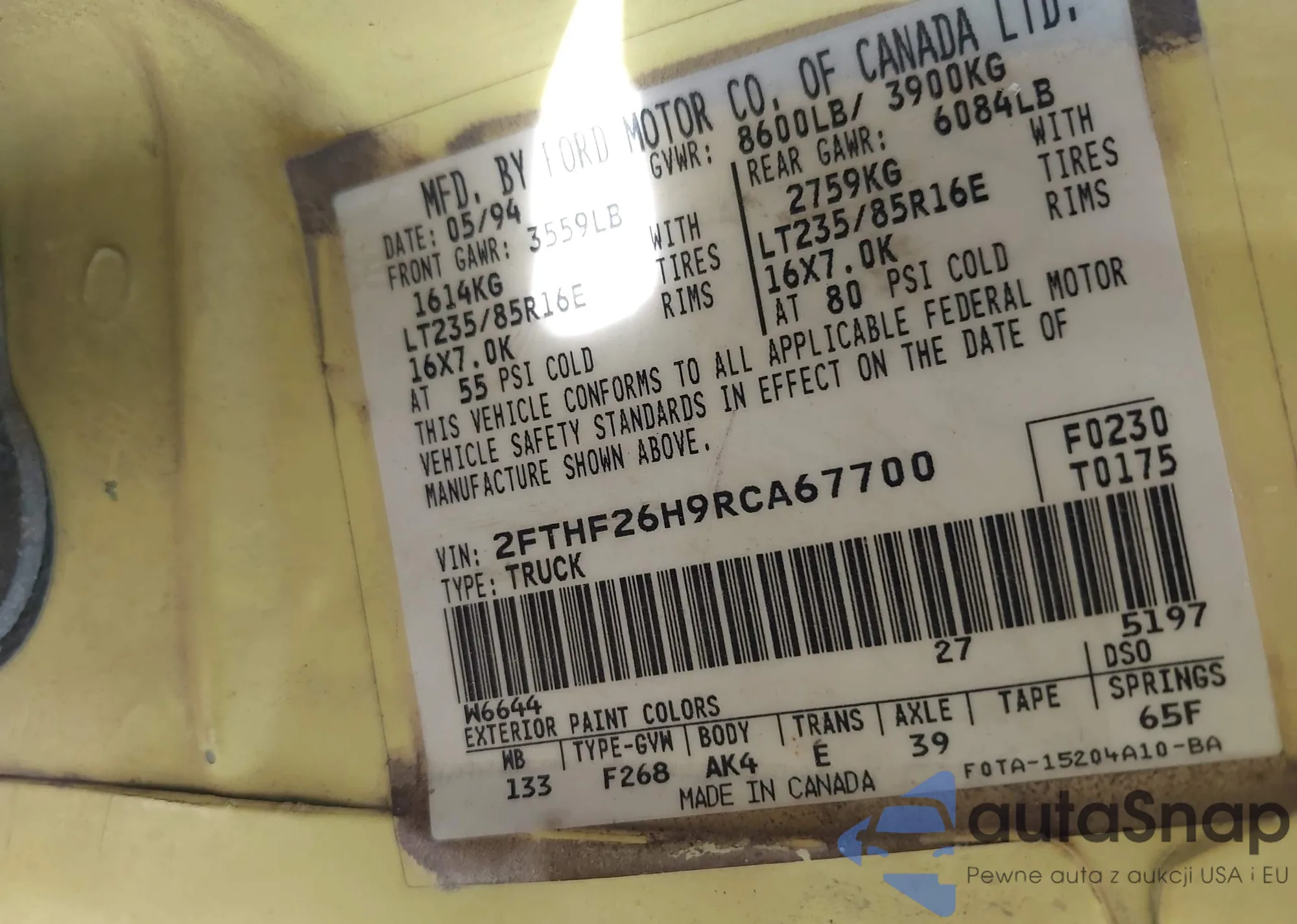 • VIN 2FTHF26H9RCA67700