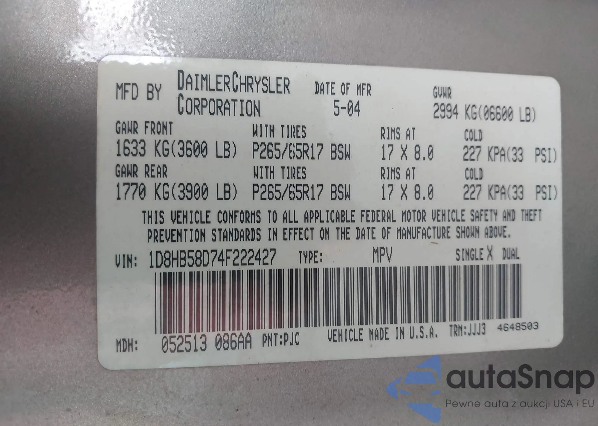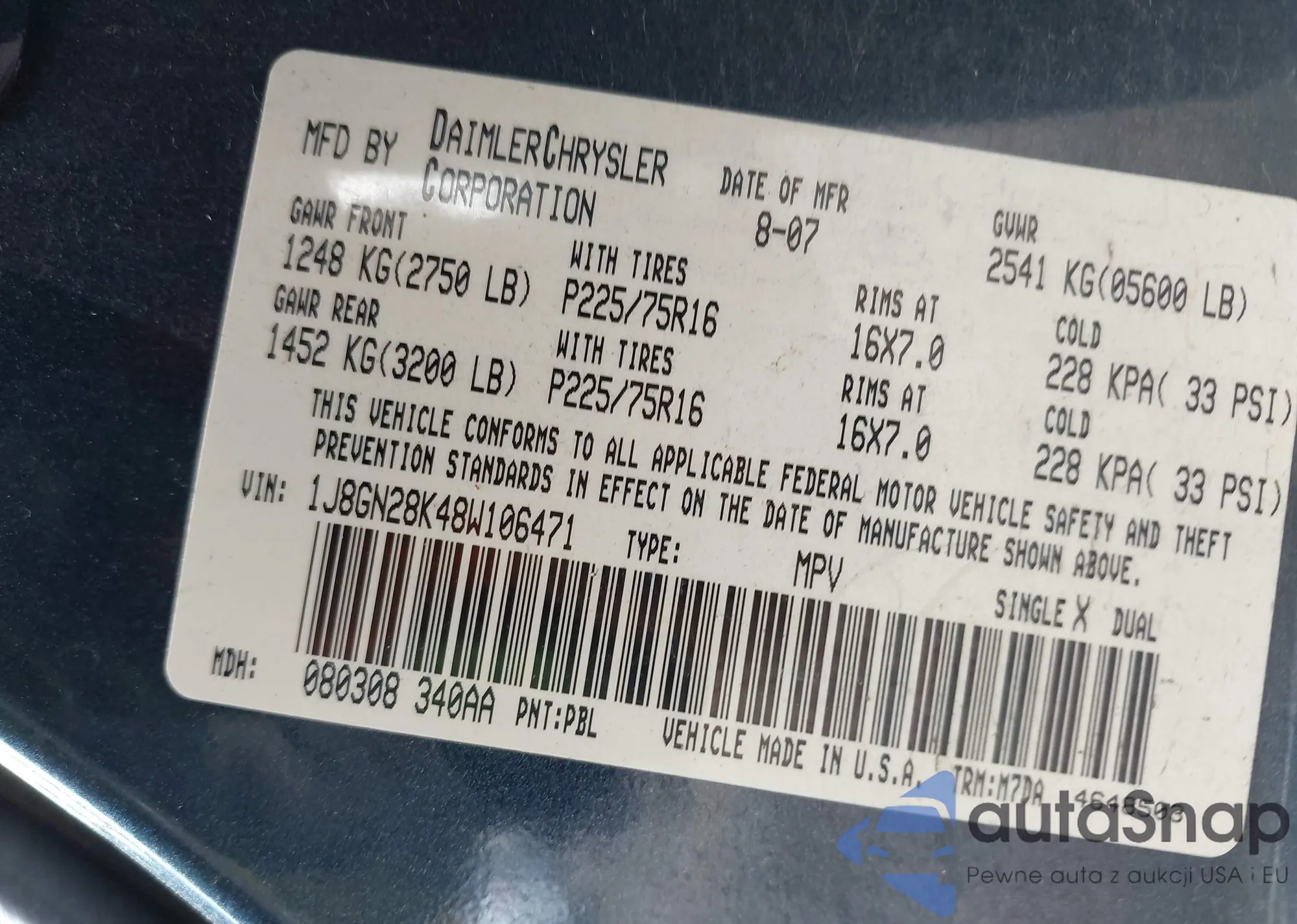 LOT: 43215349 VIN: 1J8GN28K48W106471
