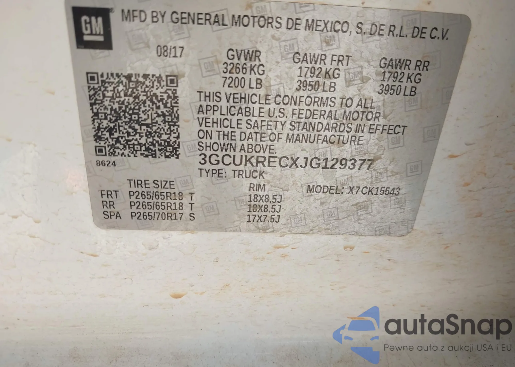 LOT: 42868379 VIN: 5UXTR9C59JLD64918