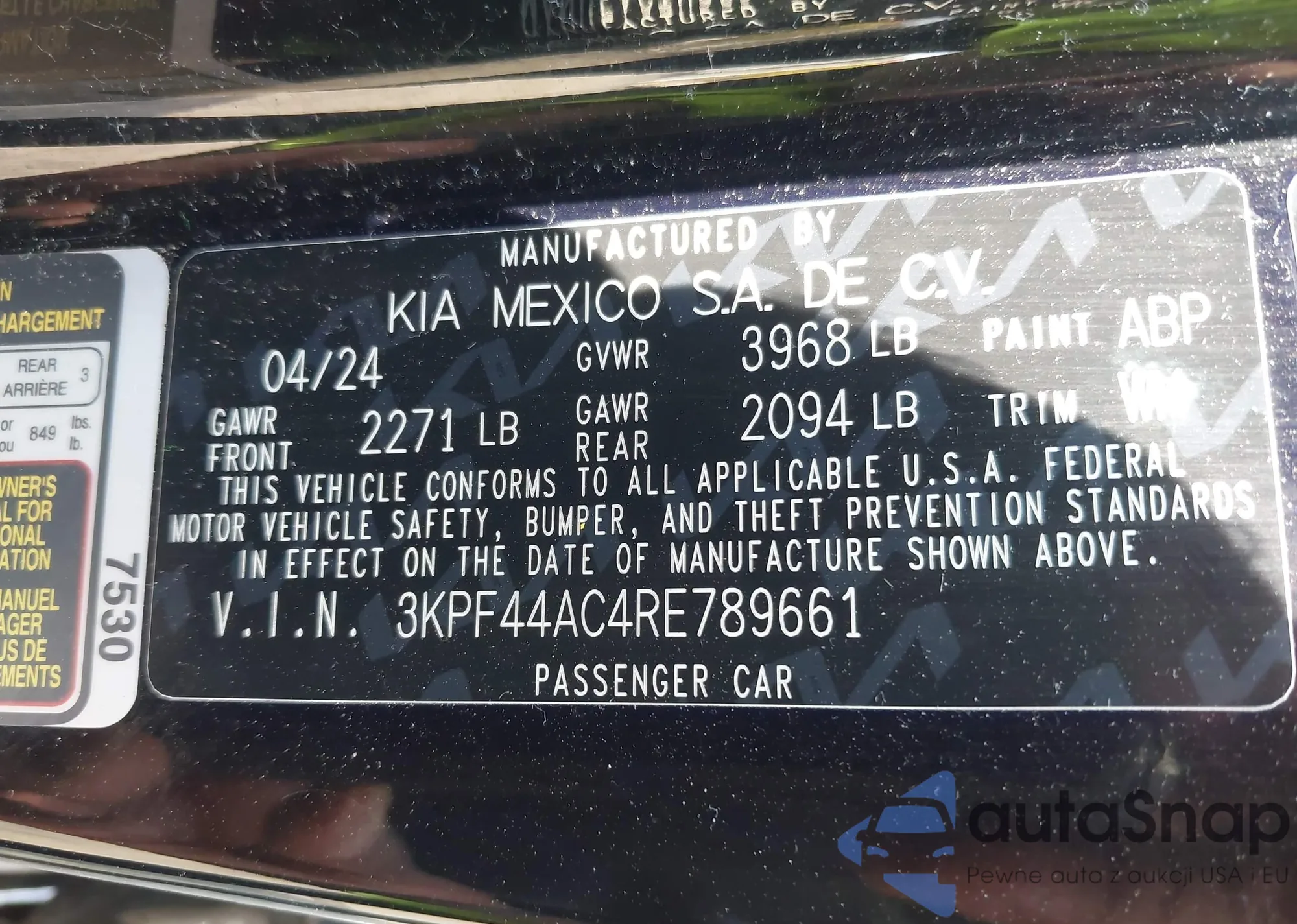 • VIN 3KPF44AC4RE789661