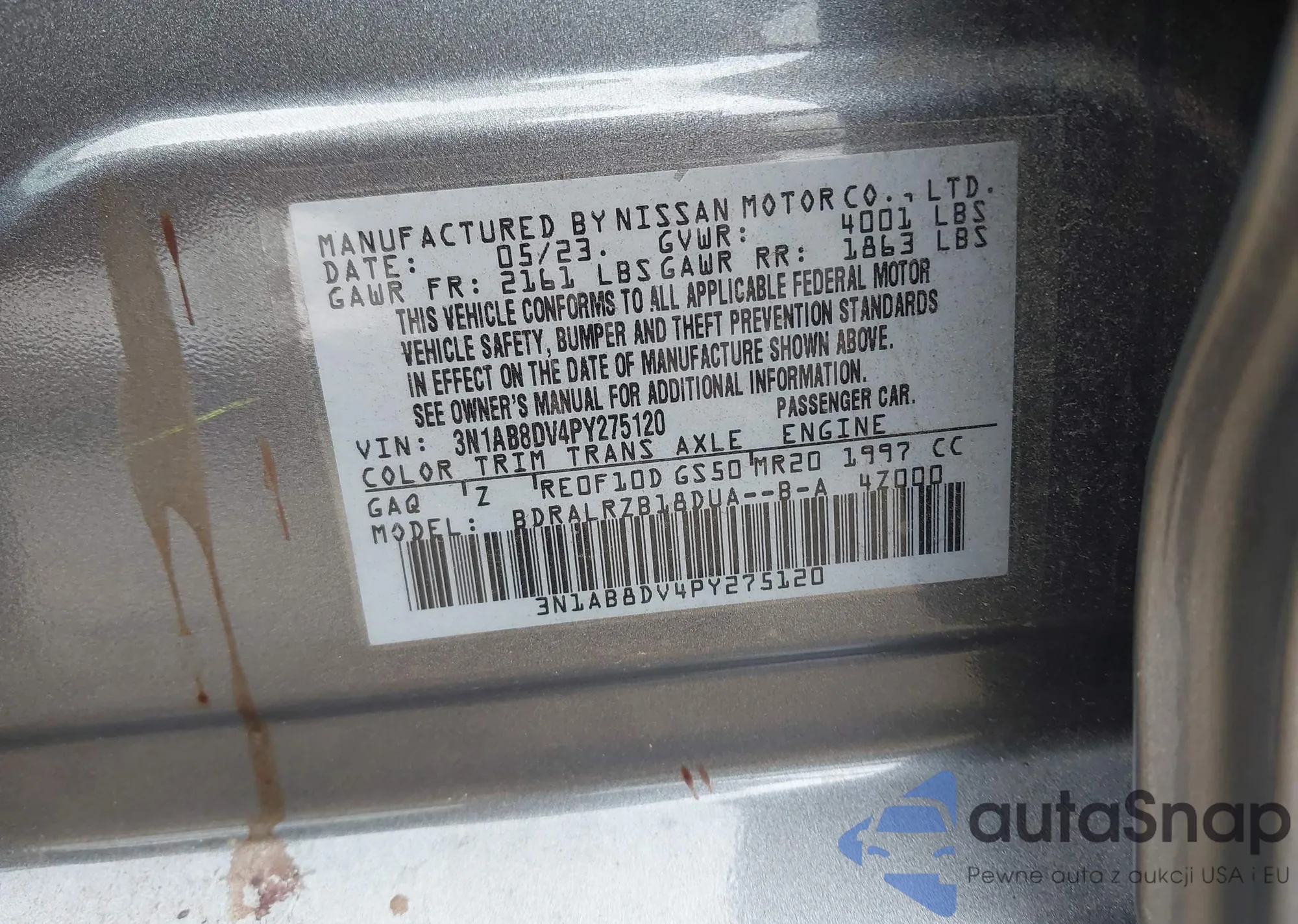 • VIN 3N1AB8DV4PY275120