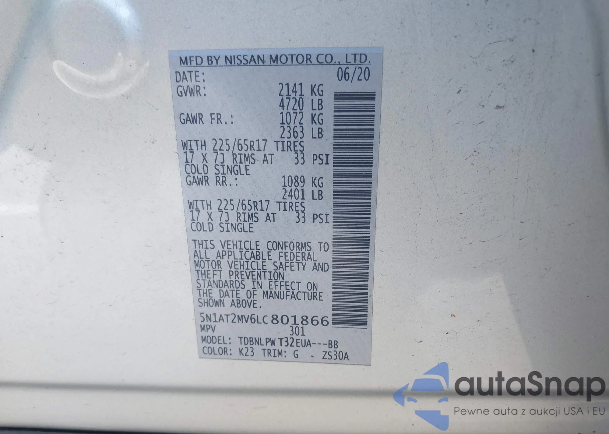 LOT: 42897110 VIN: 5N1AT2MV6LC801866