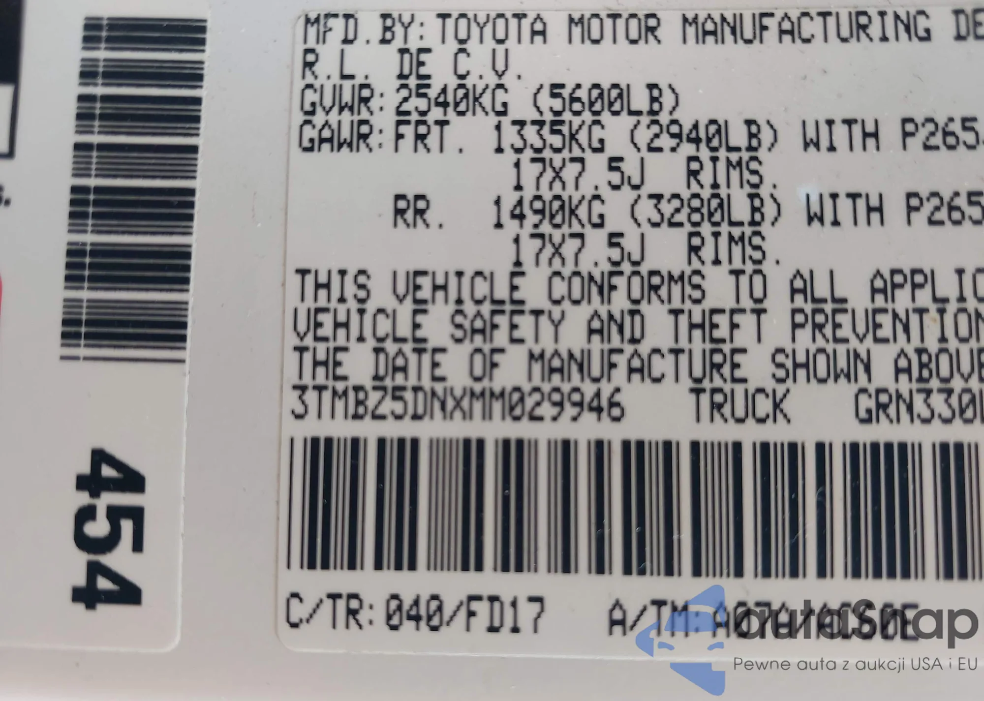 • Lot number 42895915
