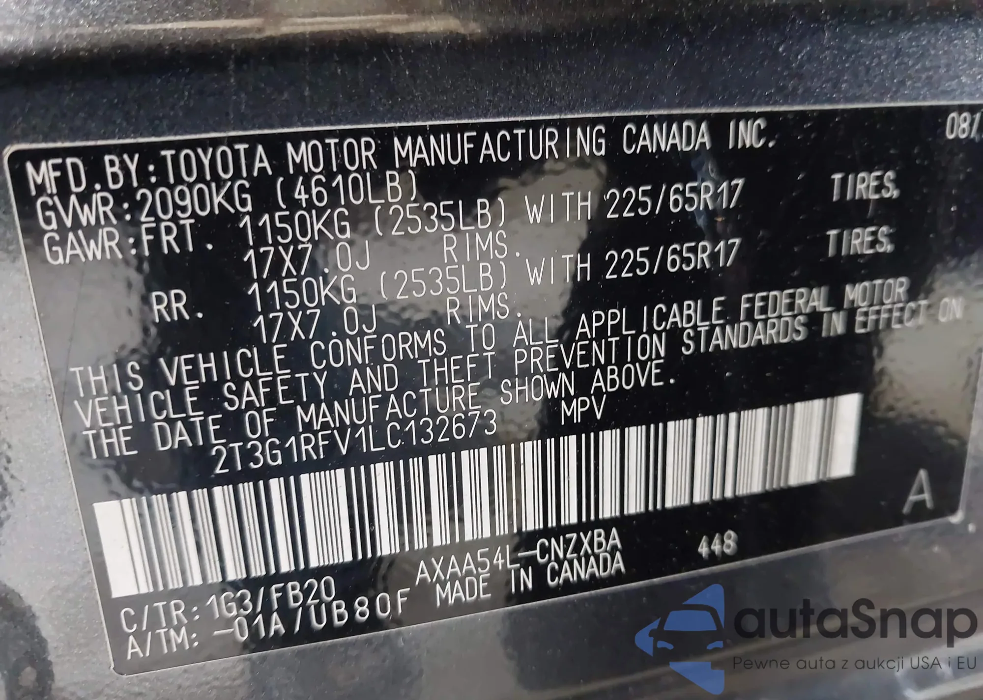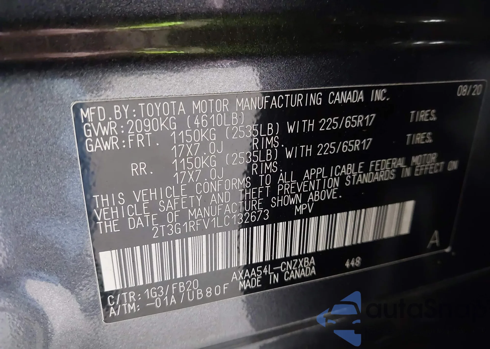 LOT: 43151245 VIN: 2T3G1RFV1LC132673