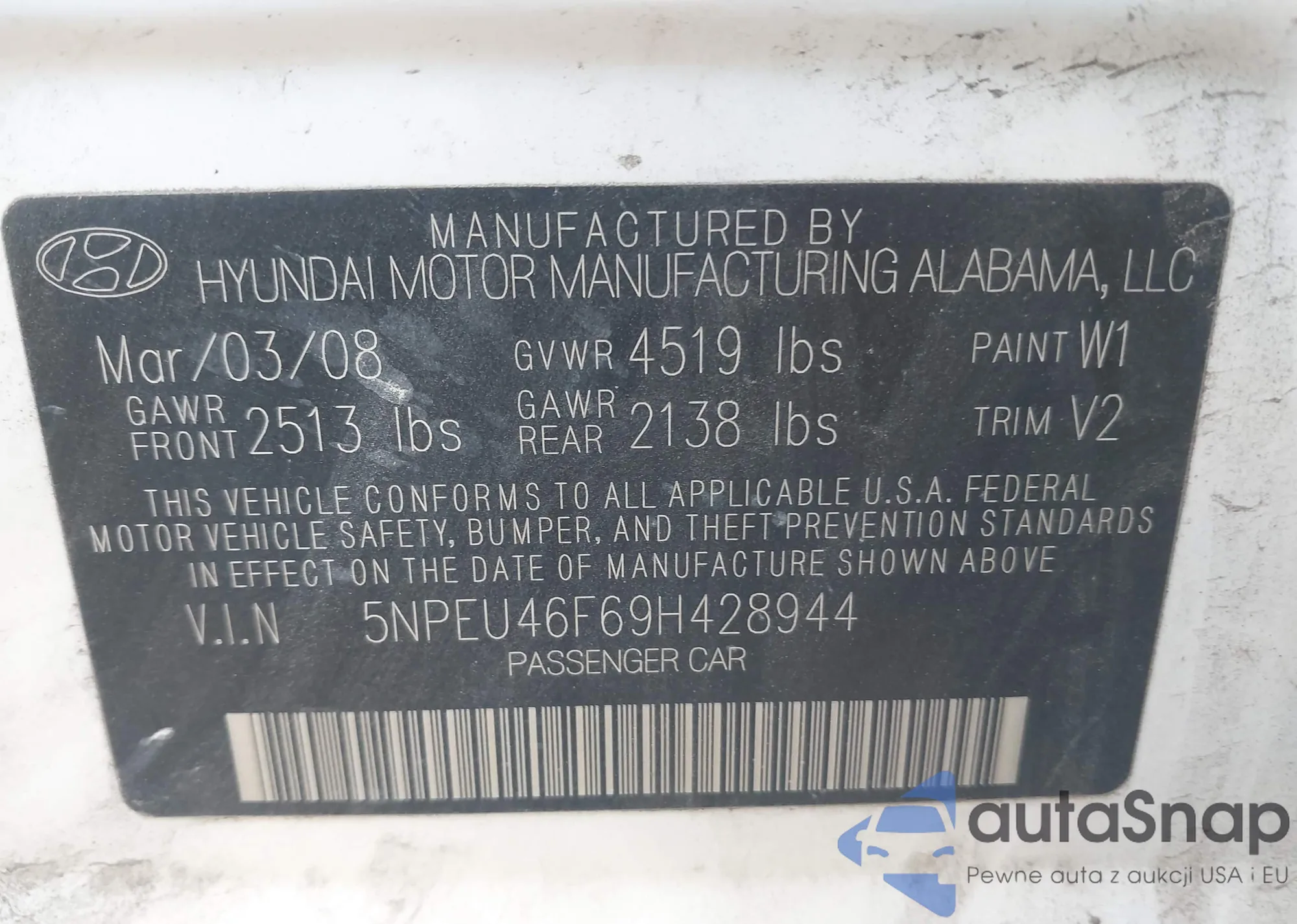 • VIN 5TDJK3EH8AS009901