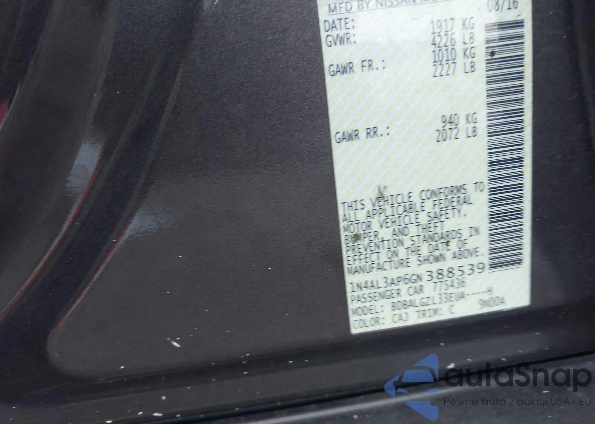 • VIN 1N4AL3AP6GN388539