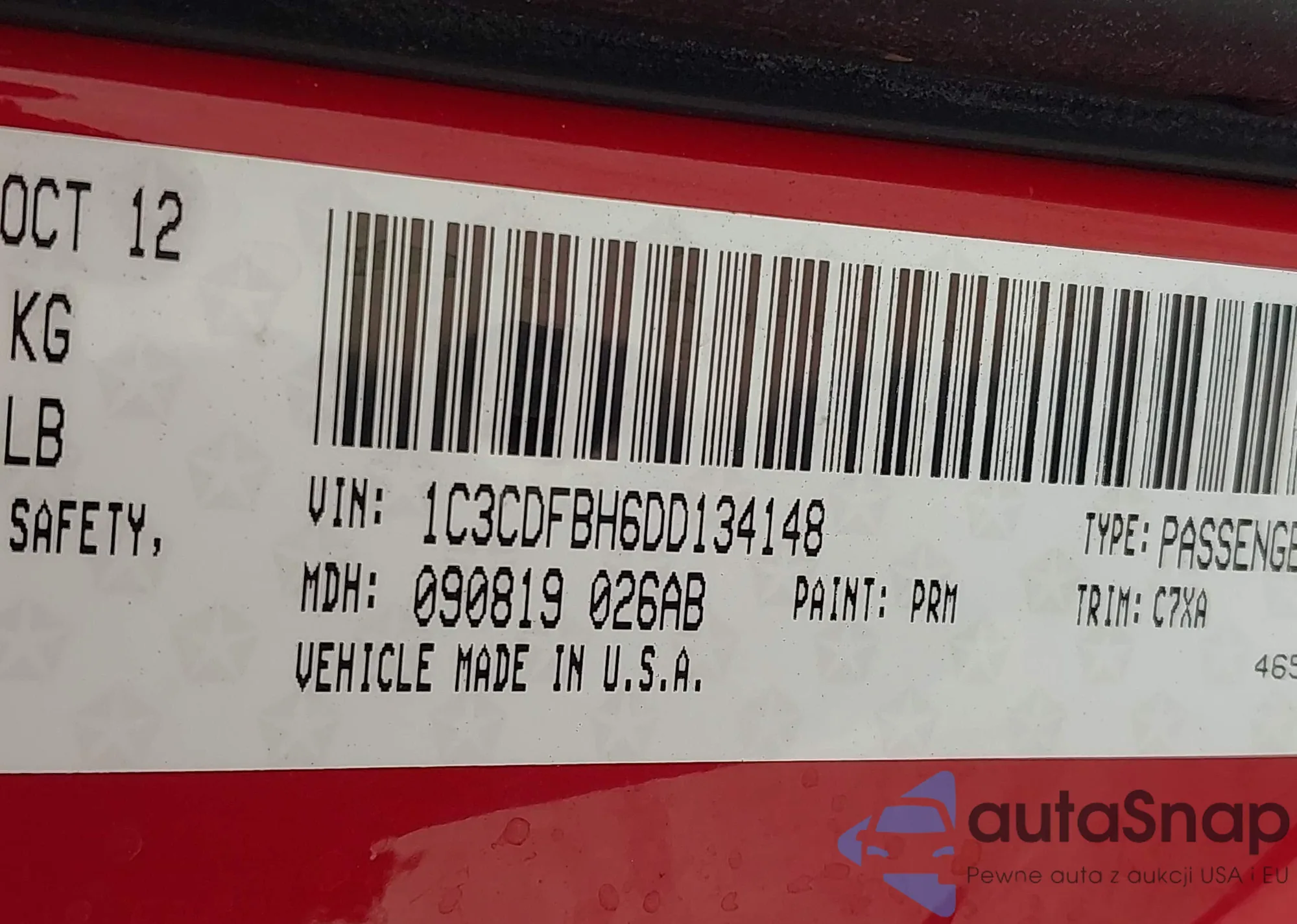• VIN 1C3CDFBH6DD134148