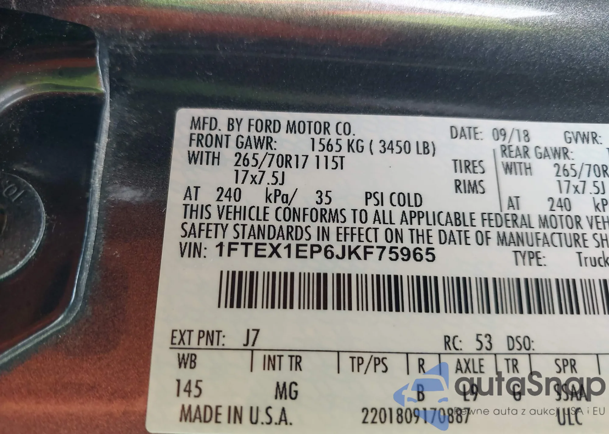 • VIN 1FMCU9GD1JUC56667