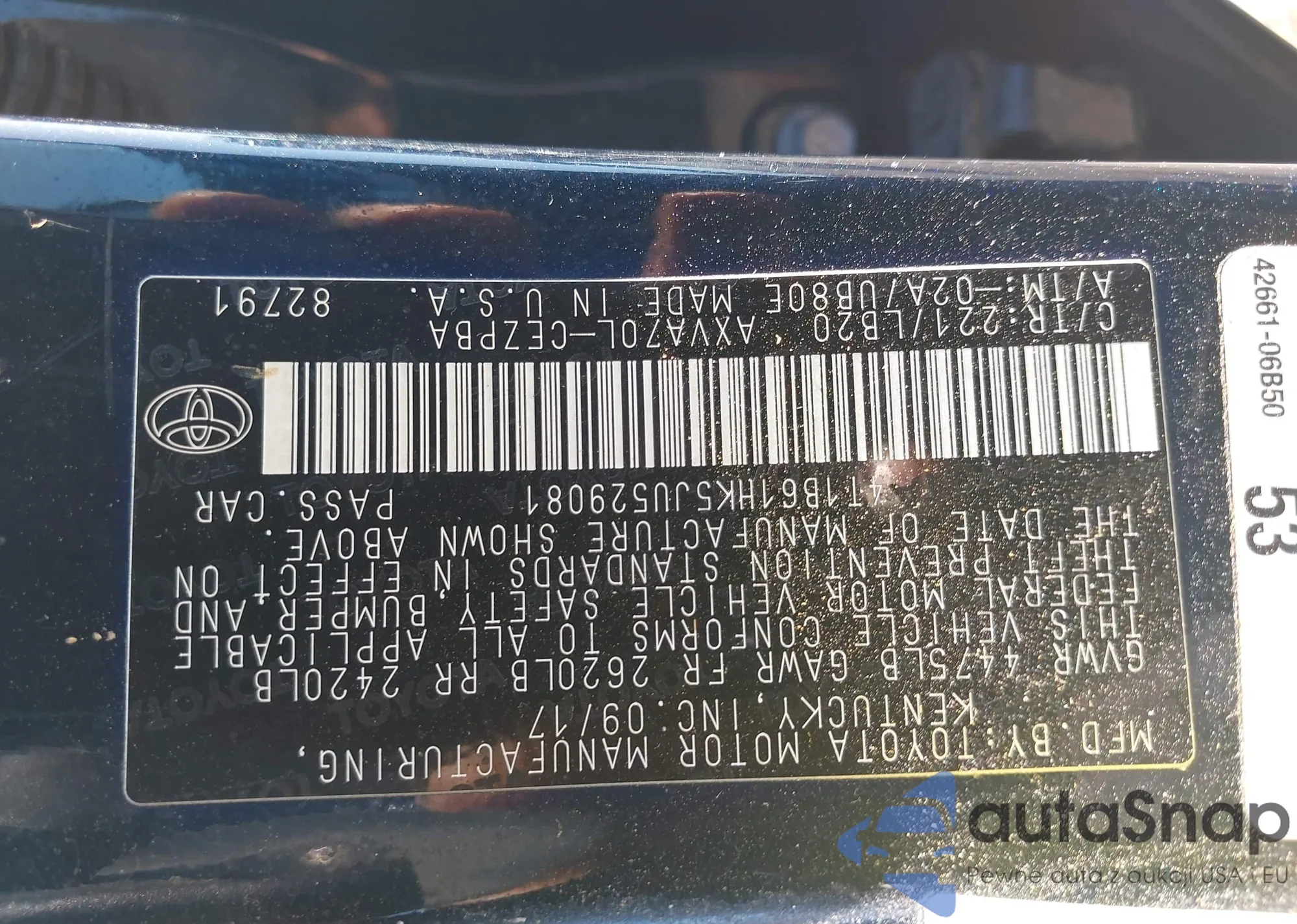 LOT: 43181168 VIN: 4T1B61HK5JU529081