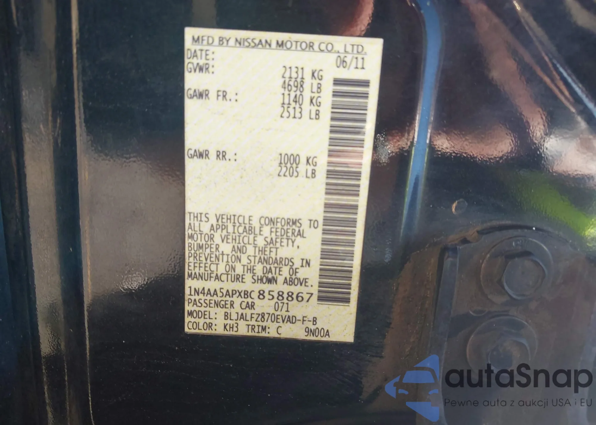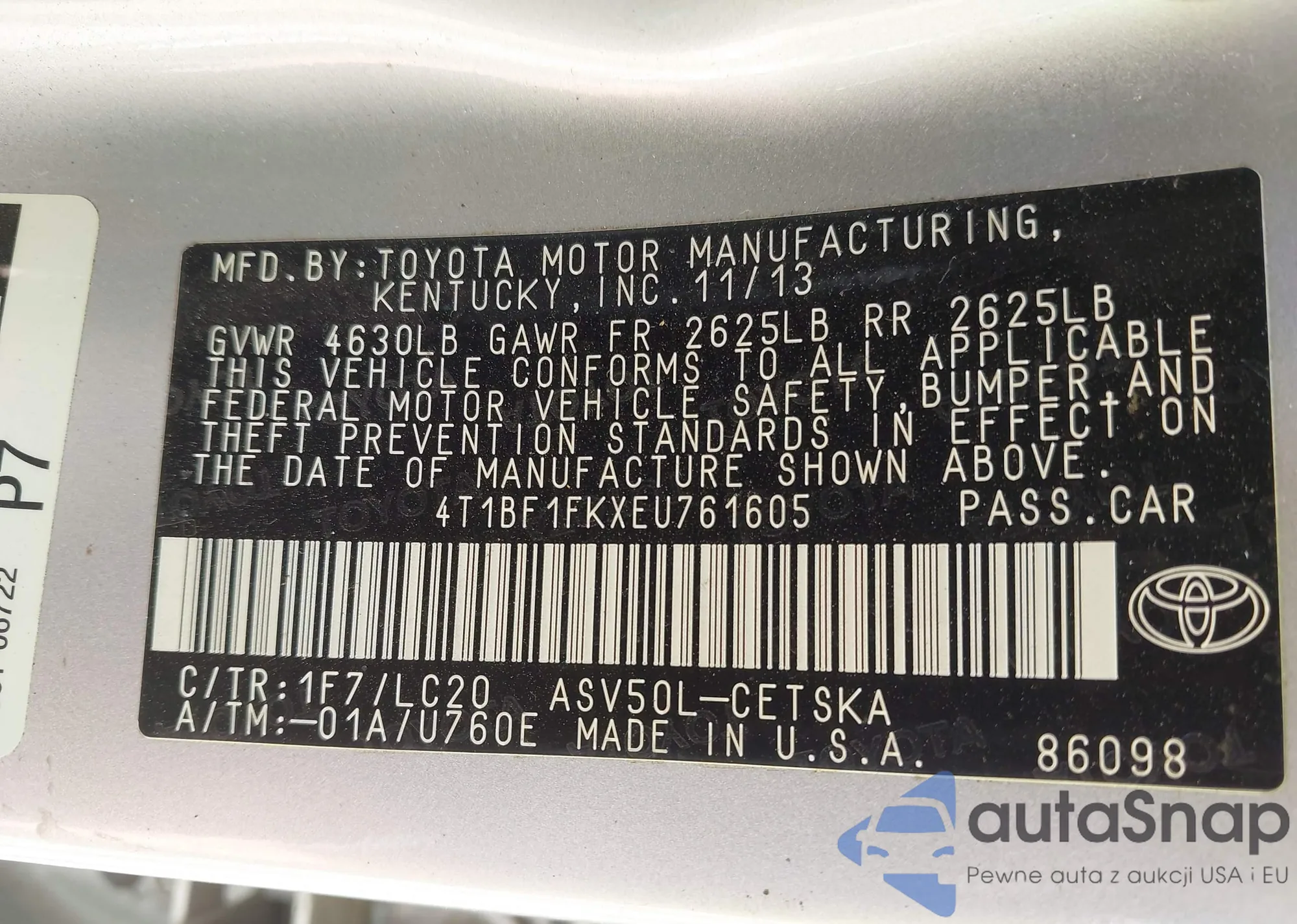 • VIN 4T1B11HK7KU806328
