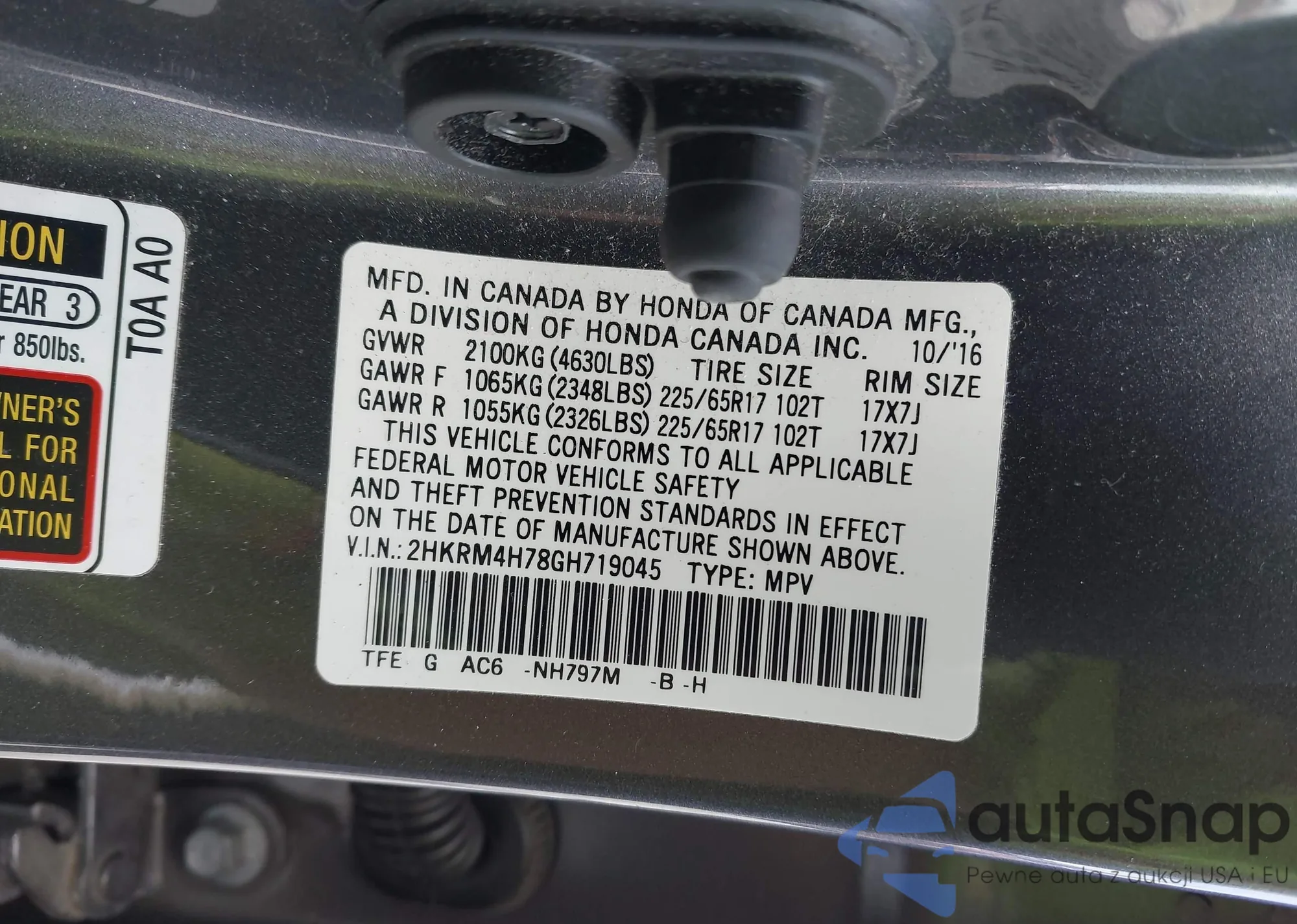 • VIN 2HKRM4H78GH719045