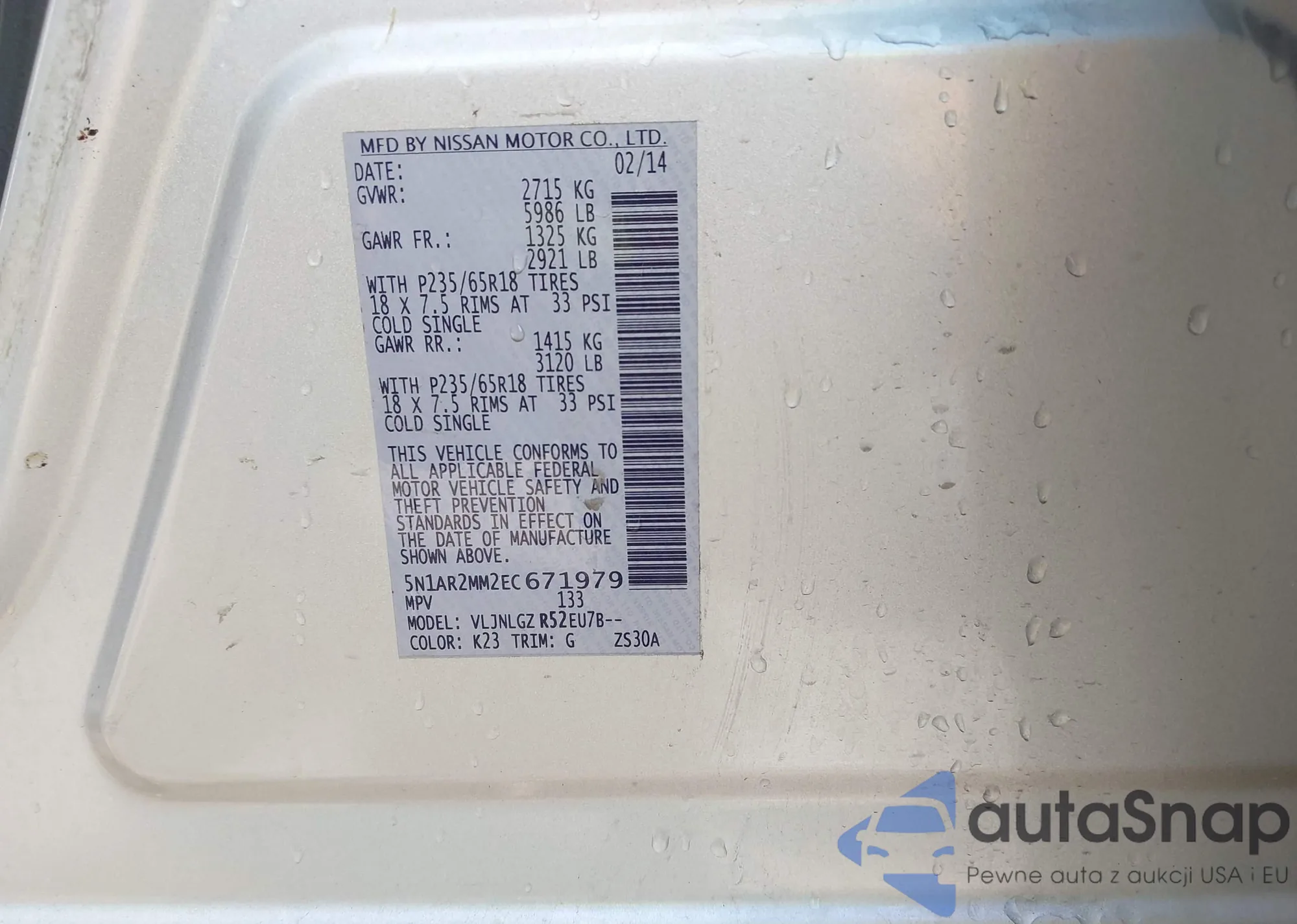 • VIN 5N1AR2MM2EC671979