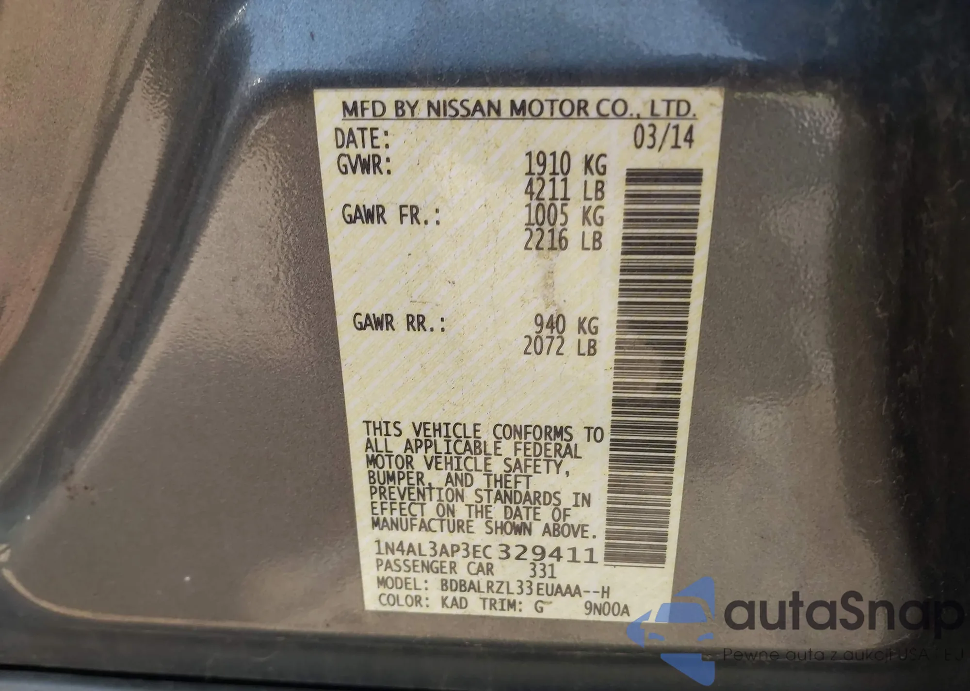 LOT: 43365690 VIN: 1N4AL21E28C265116