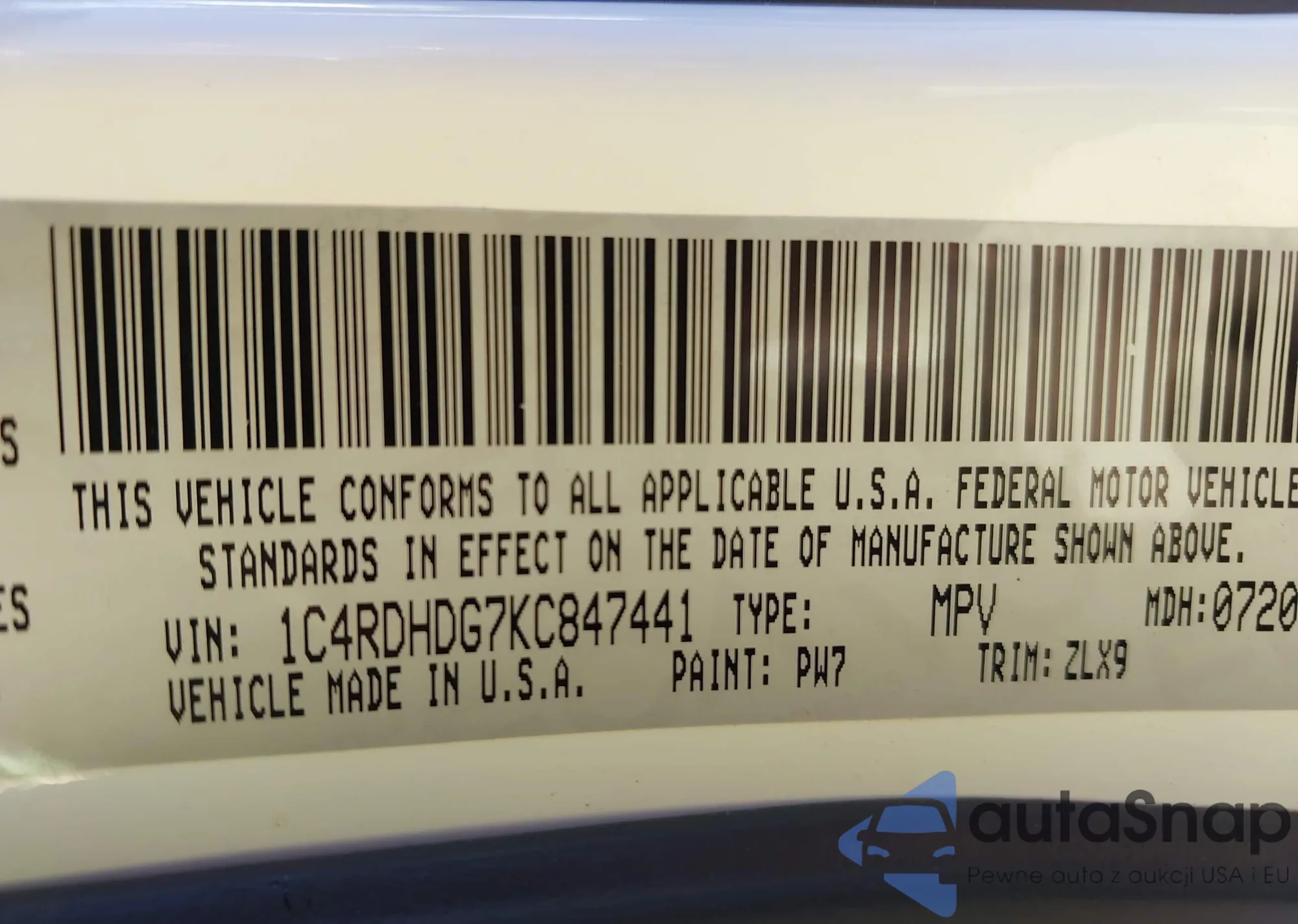 • VIN 1C4RDHDG7KC847441
