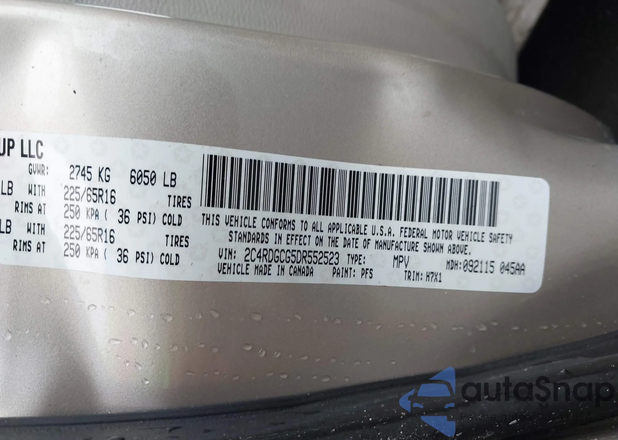 • VIN 2C4RDGCG5DR552523