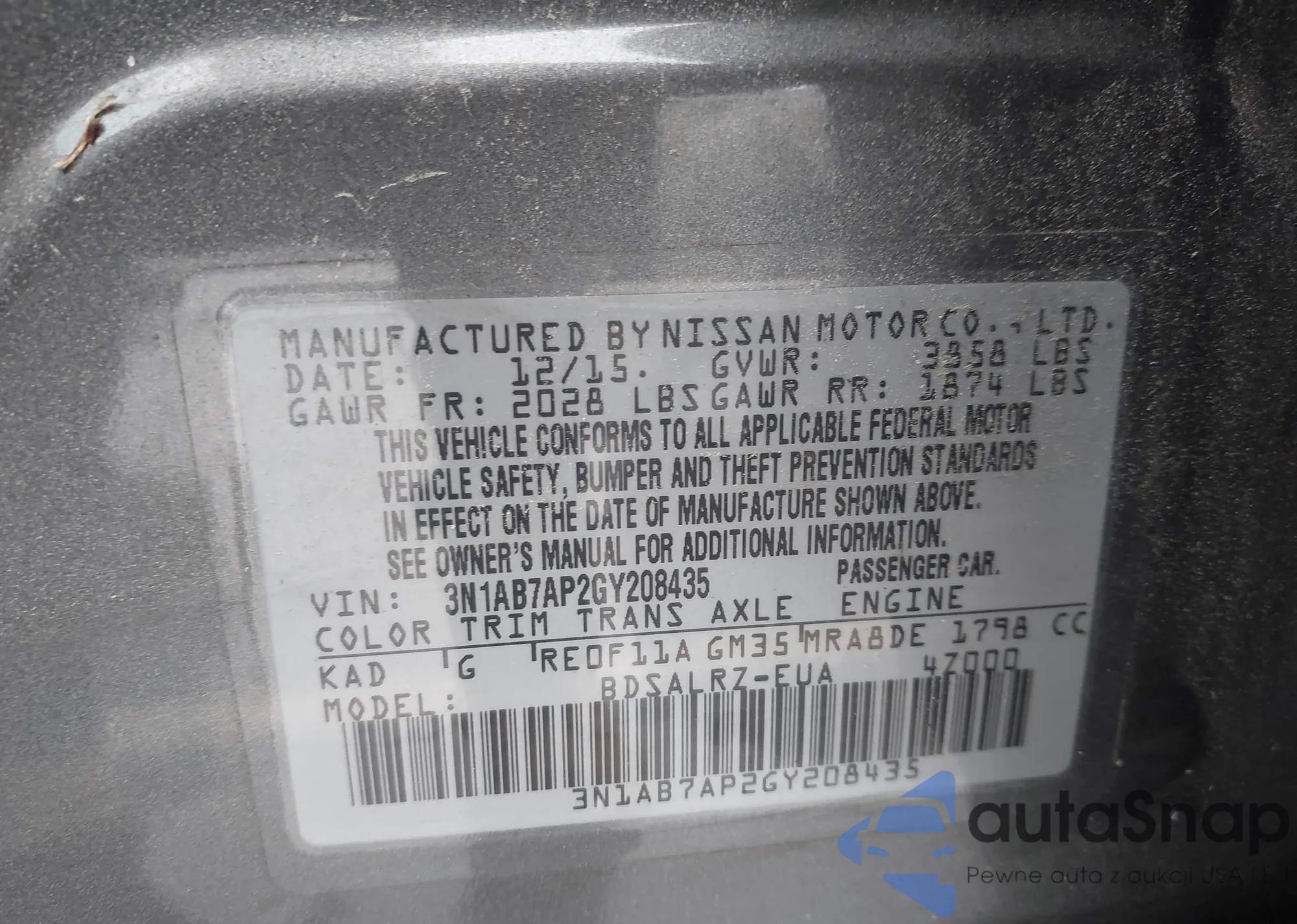• VIN 3N1AB7AP2GY208435