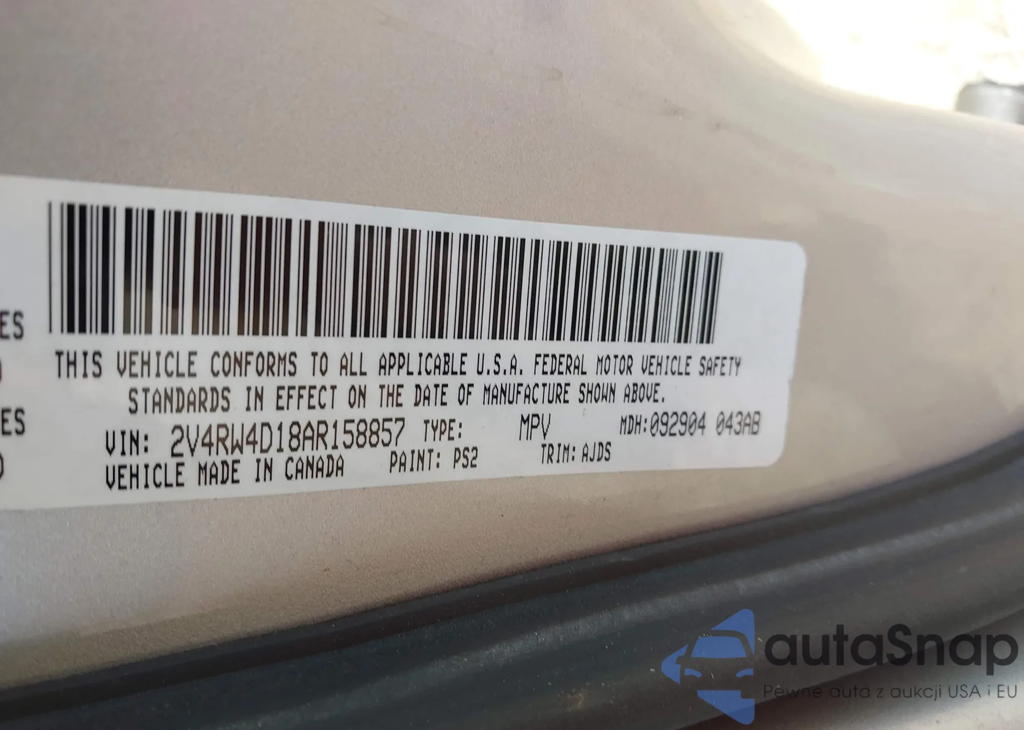 • VIN 2V4RW4D18AR158857