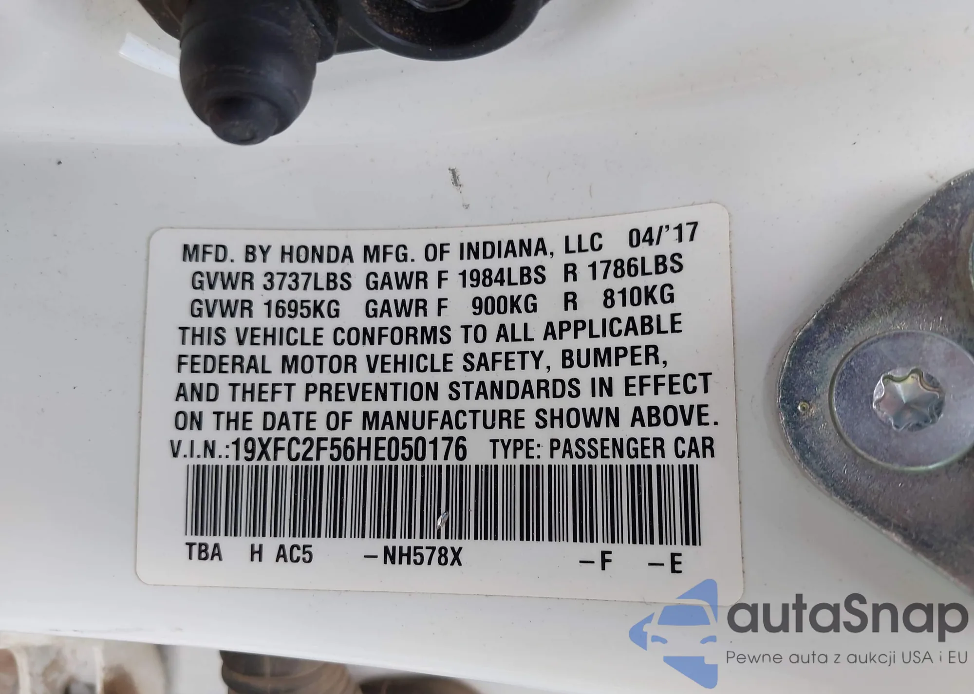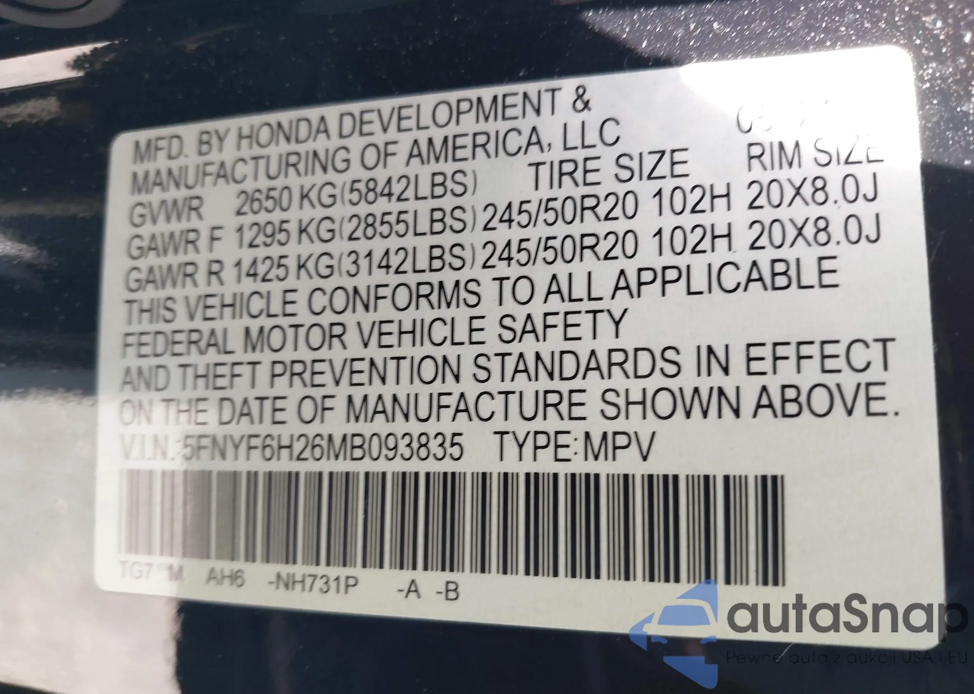 • VIN 5FNYF6H26MB093835