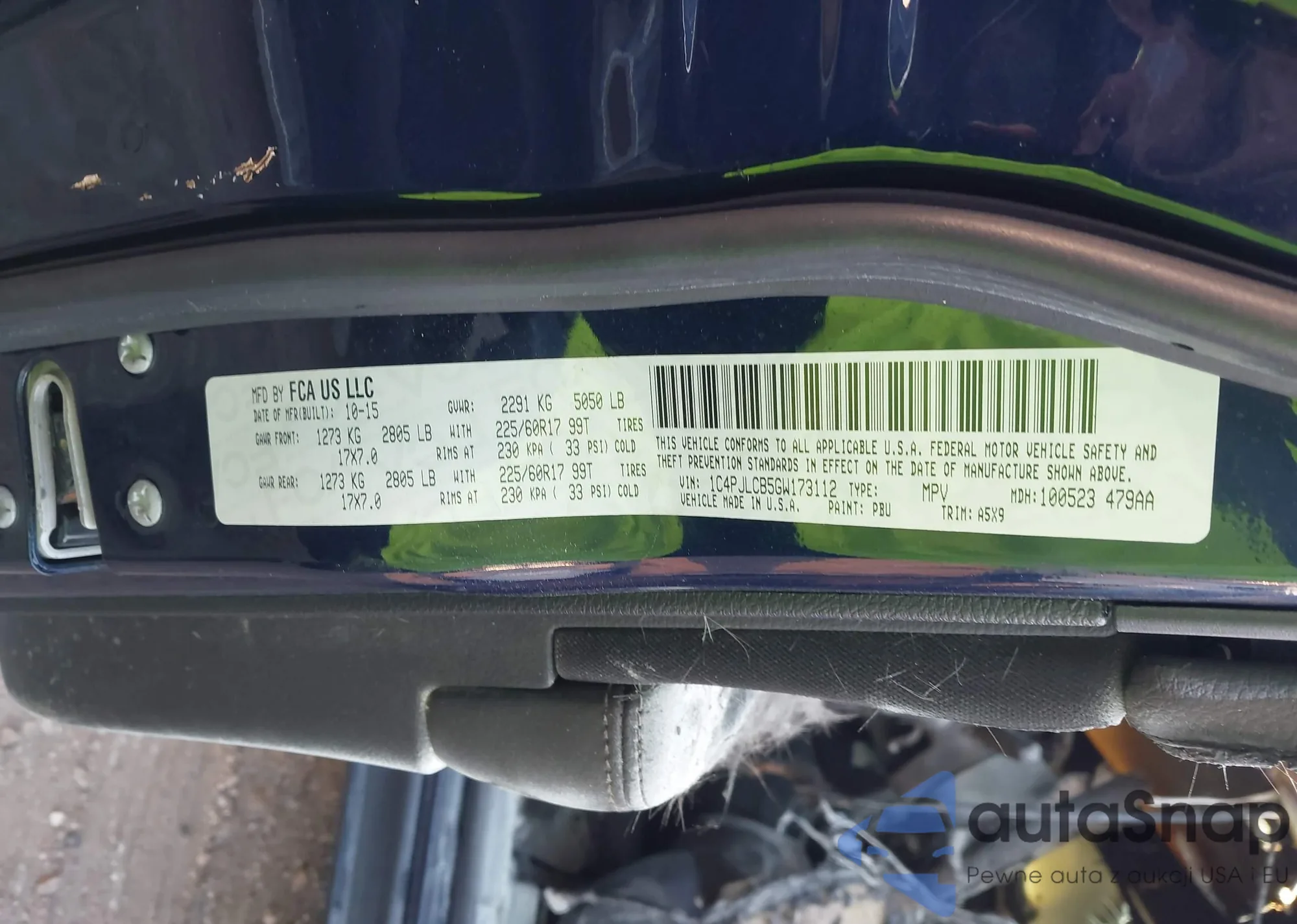 LOT: 43186610 VIN: 3C4NJDCB5MT569796