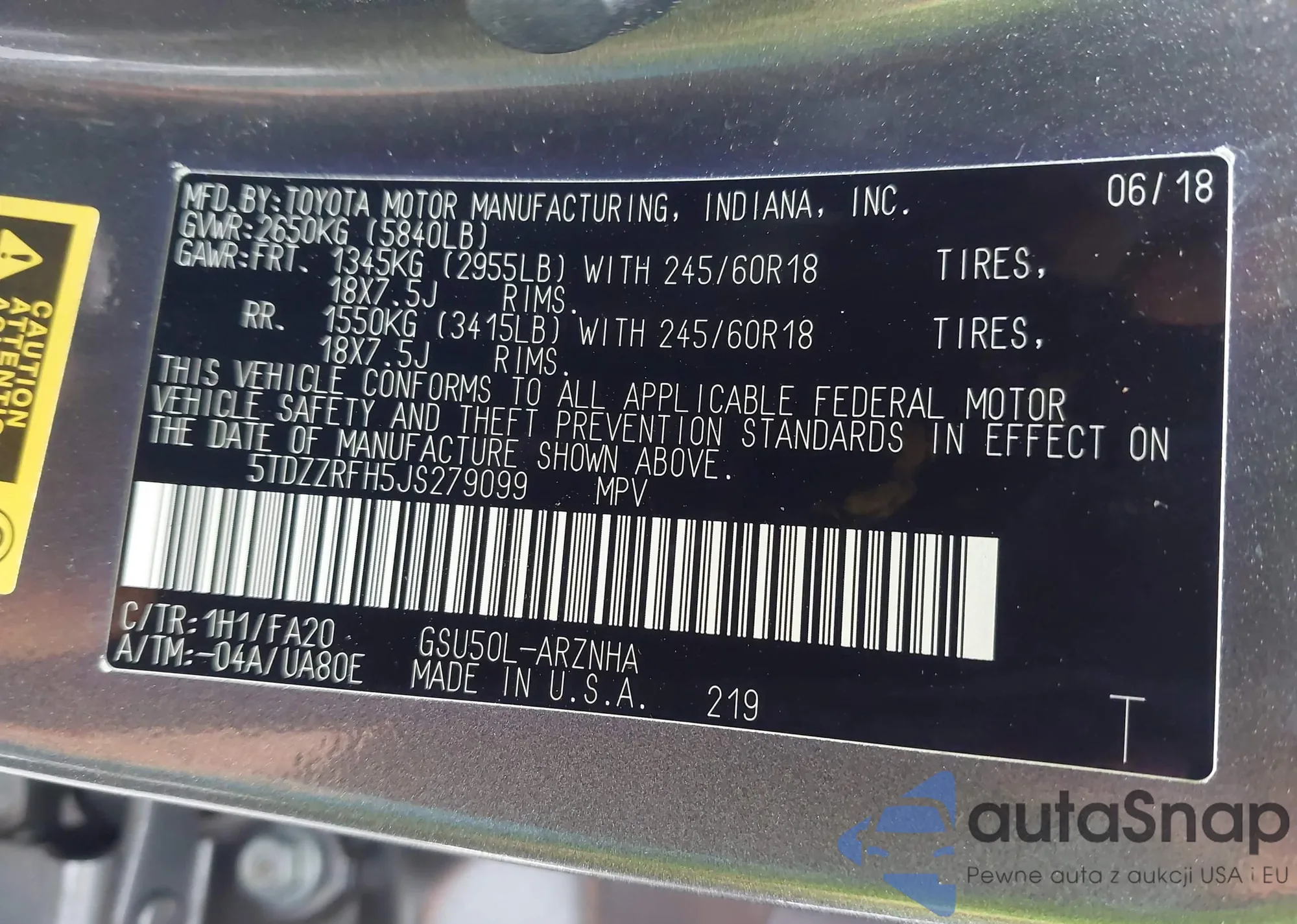• VIN 5TDZZRFH5JS279099
