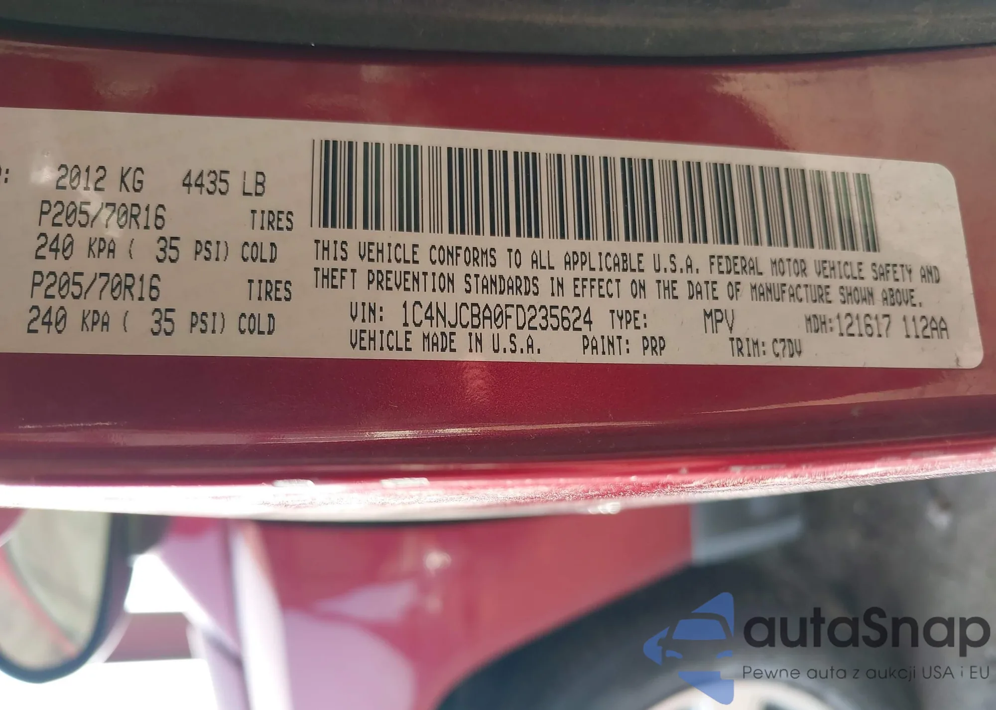 • VIN 1C4NJCBA0FD235624