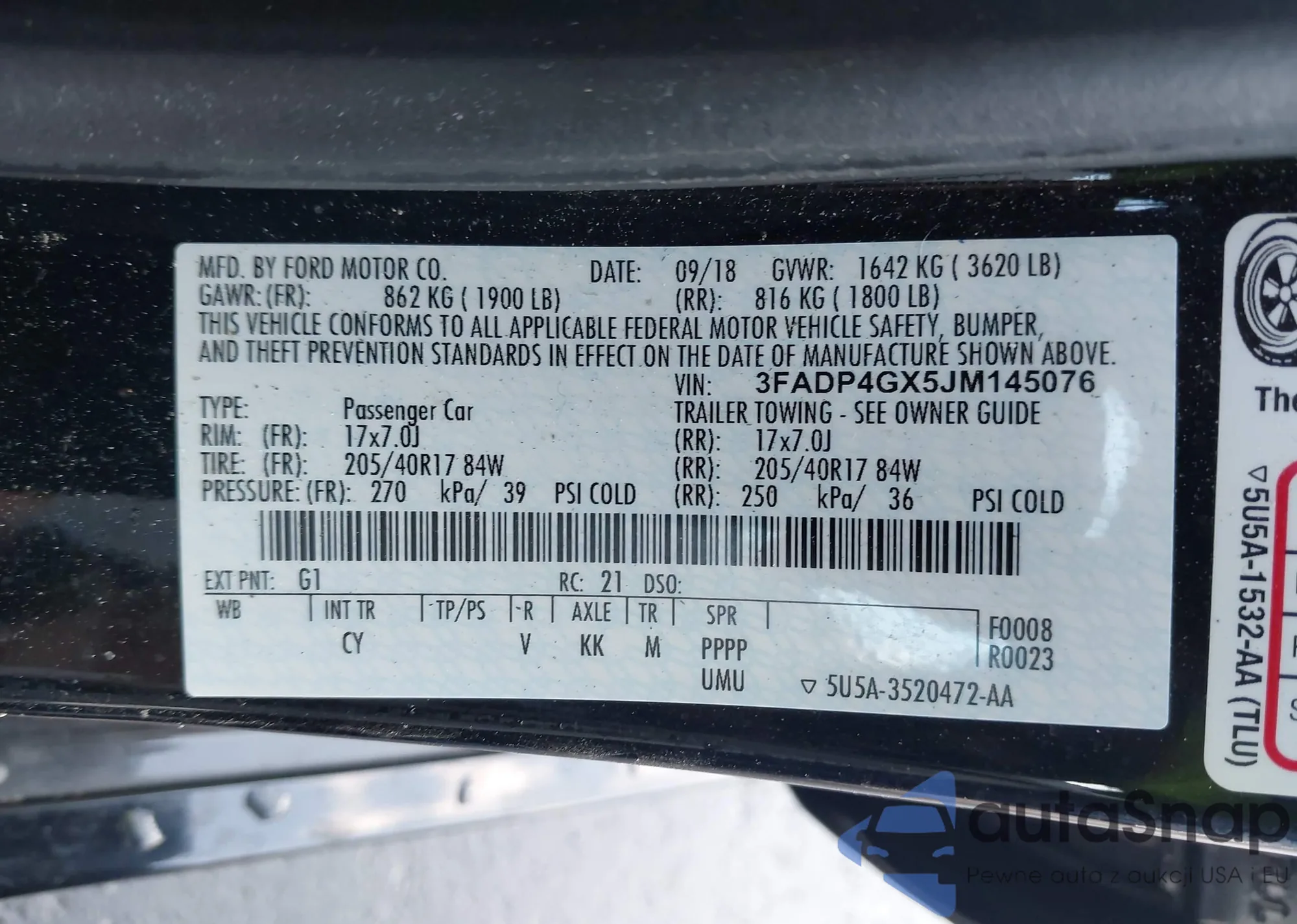 • VIN 3FAHP08187R115313