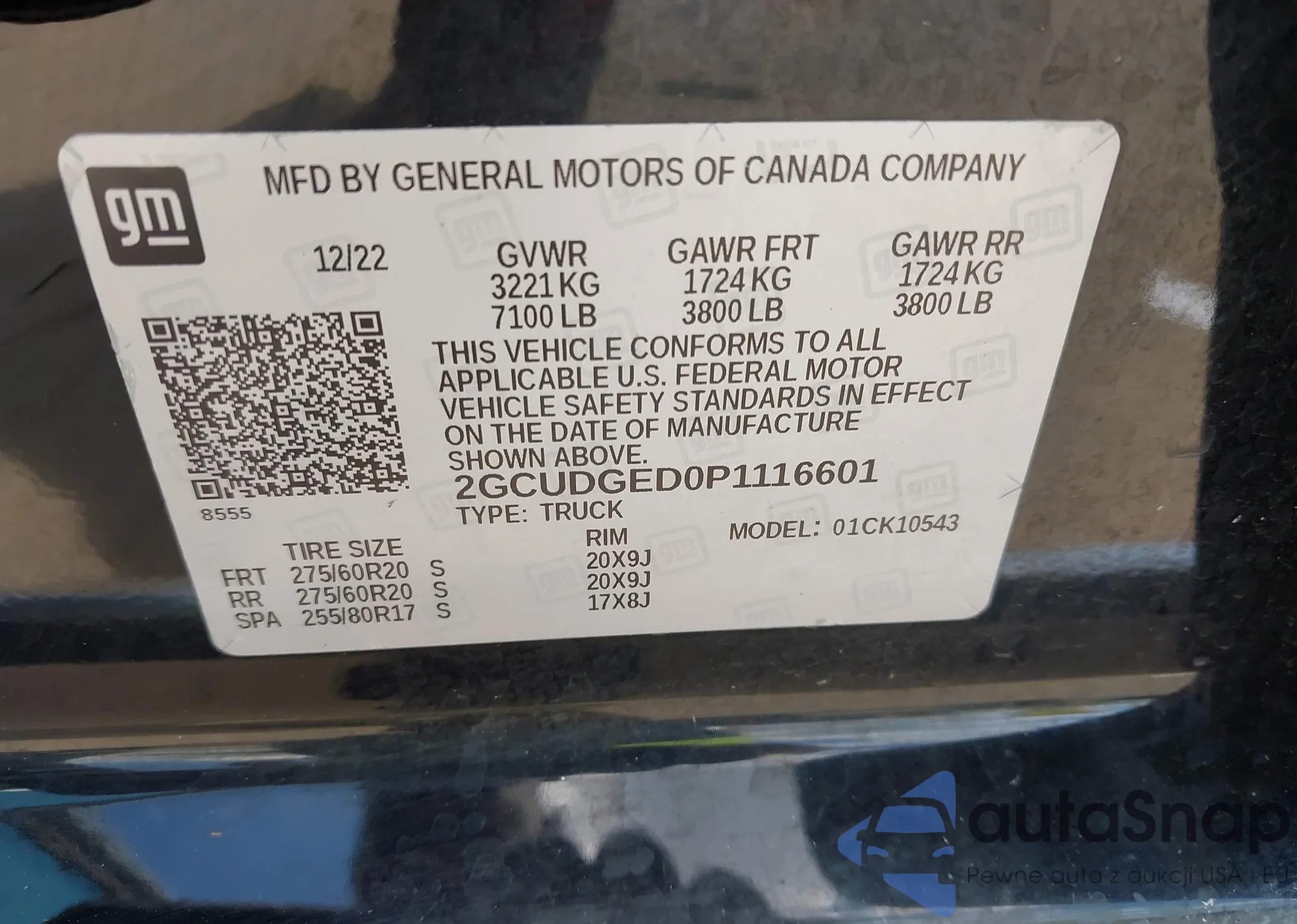 LOT: 43125362 VIN: 2GCUDGED0P1116601