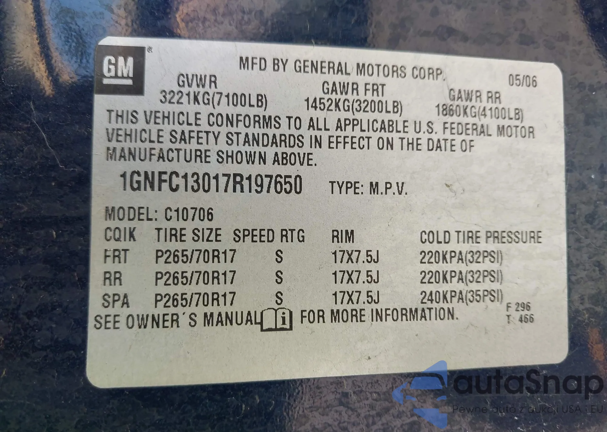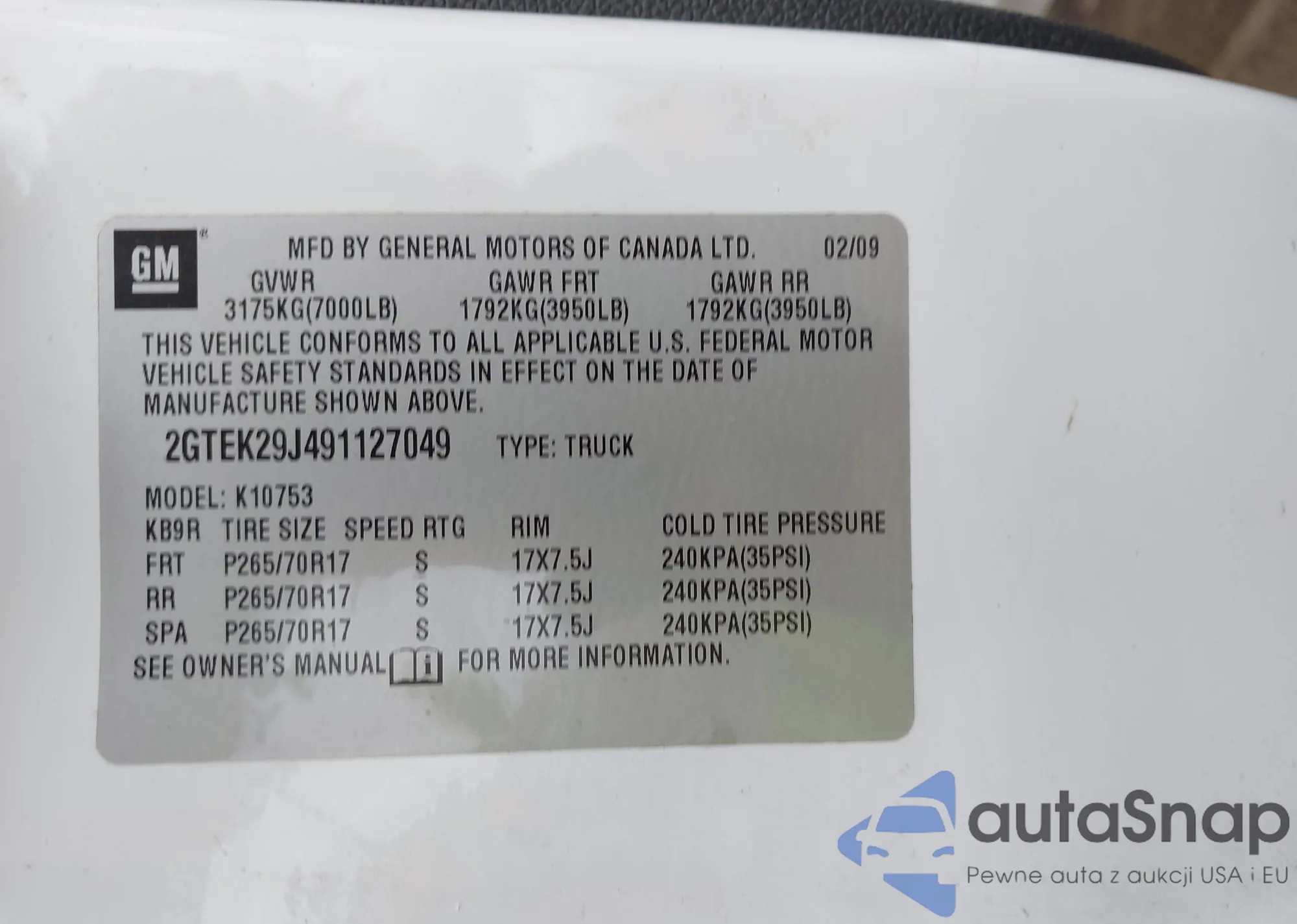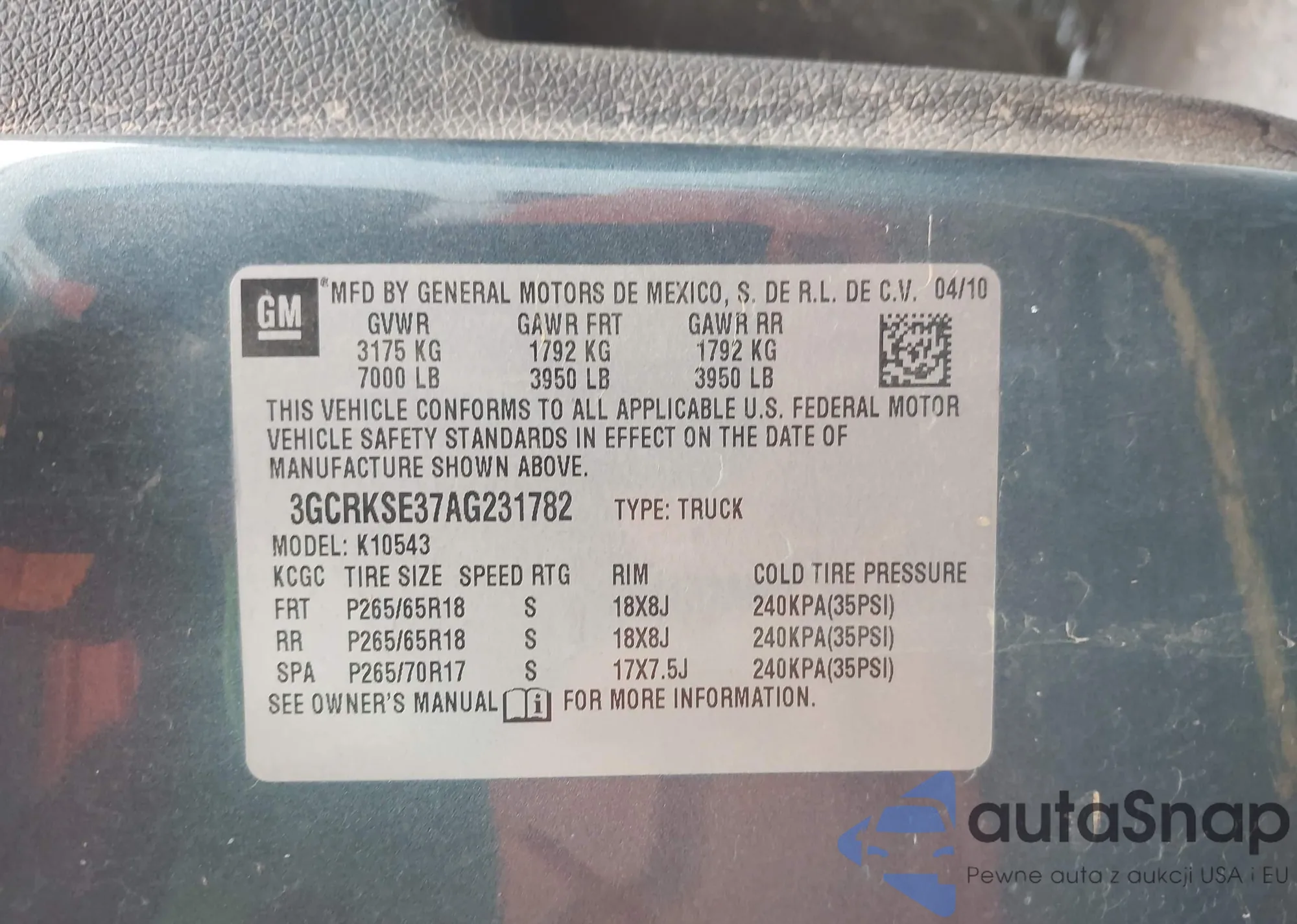 • VIN 3GCRKSE37AG231782