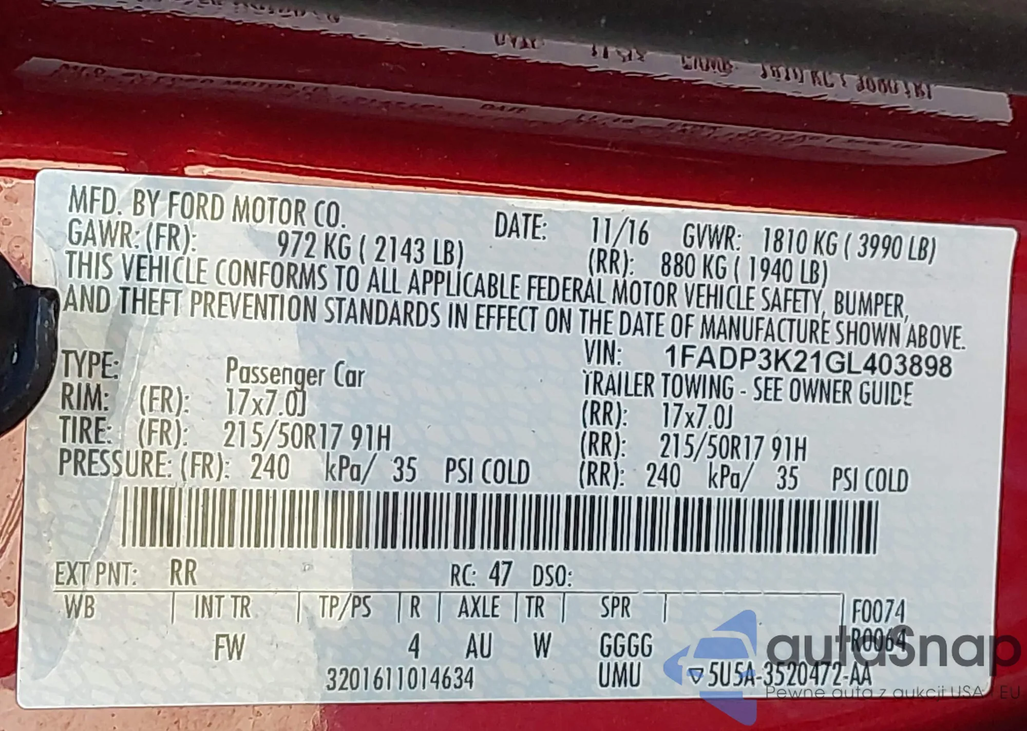 • VIN 1FADP3K21GL403898