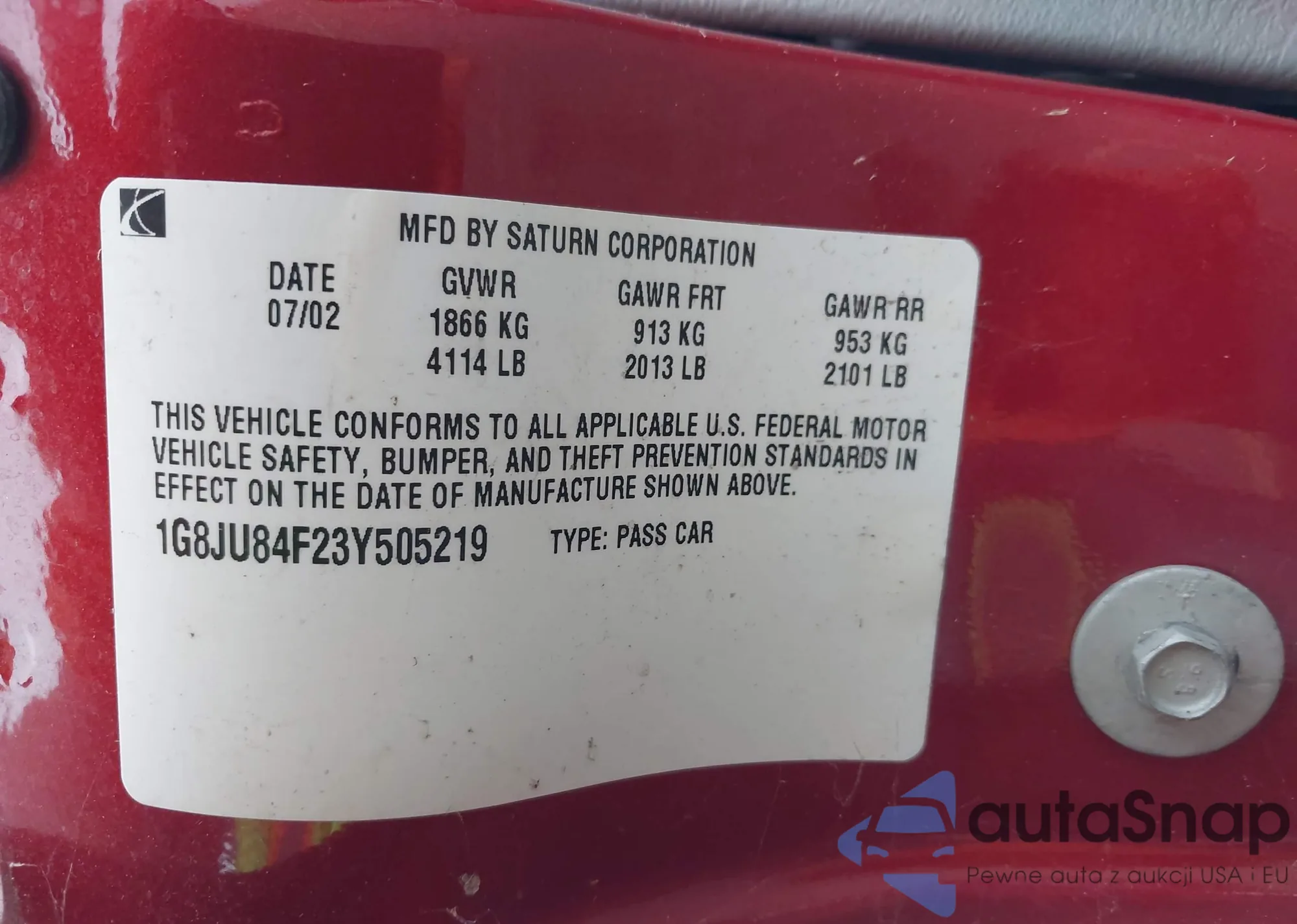 • VIN 4T1DAACK9SU127015