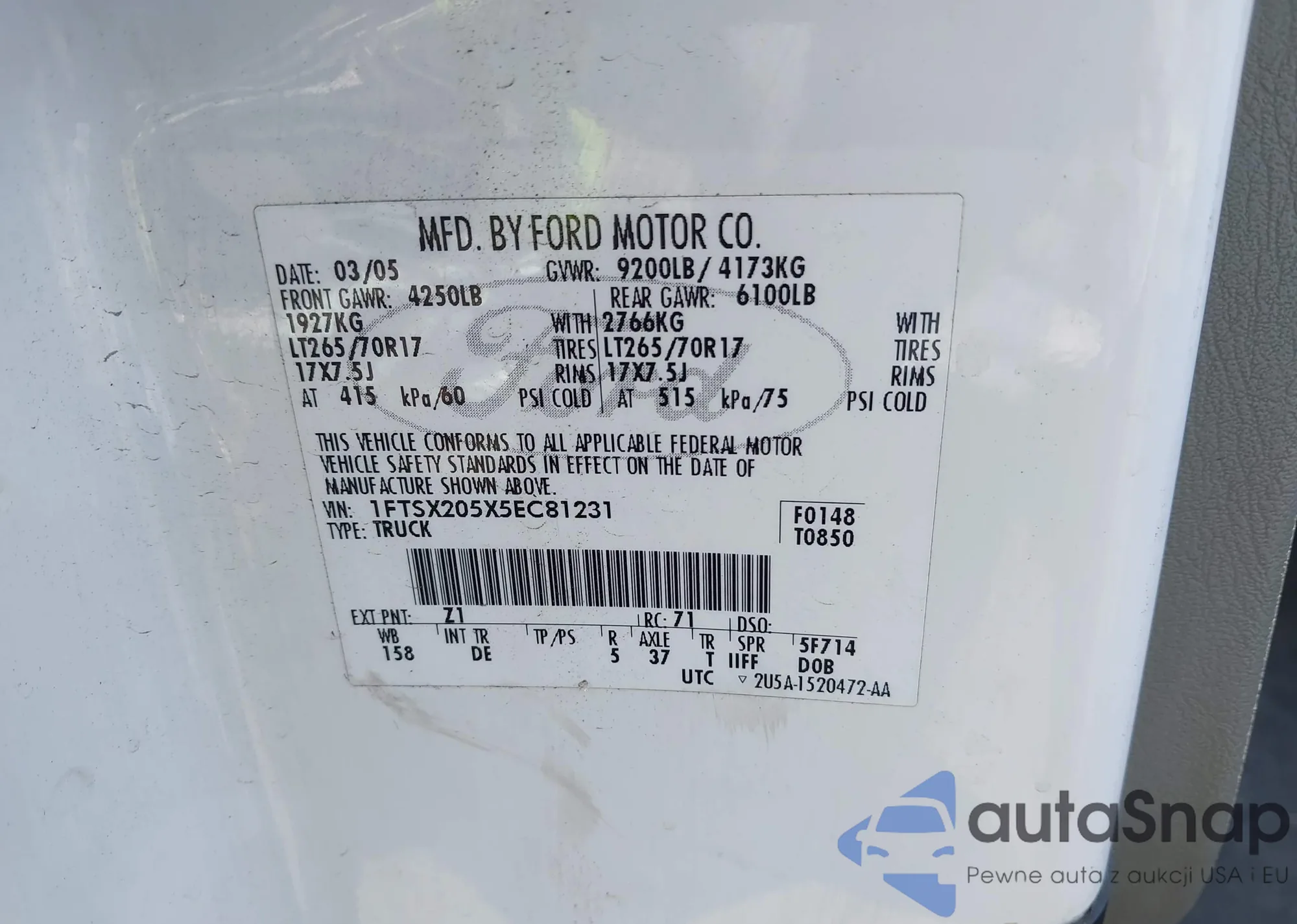 • VIN 1FTPW14V67KD22147