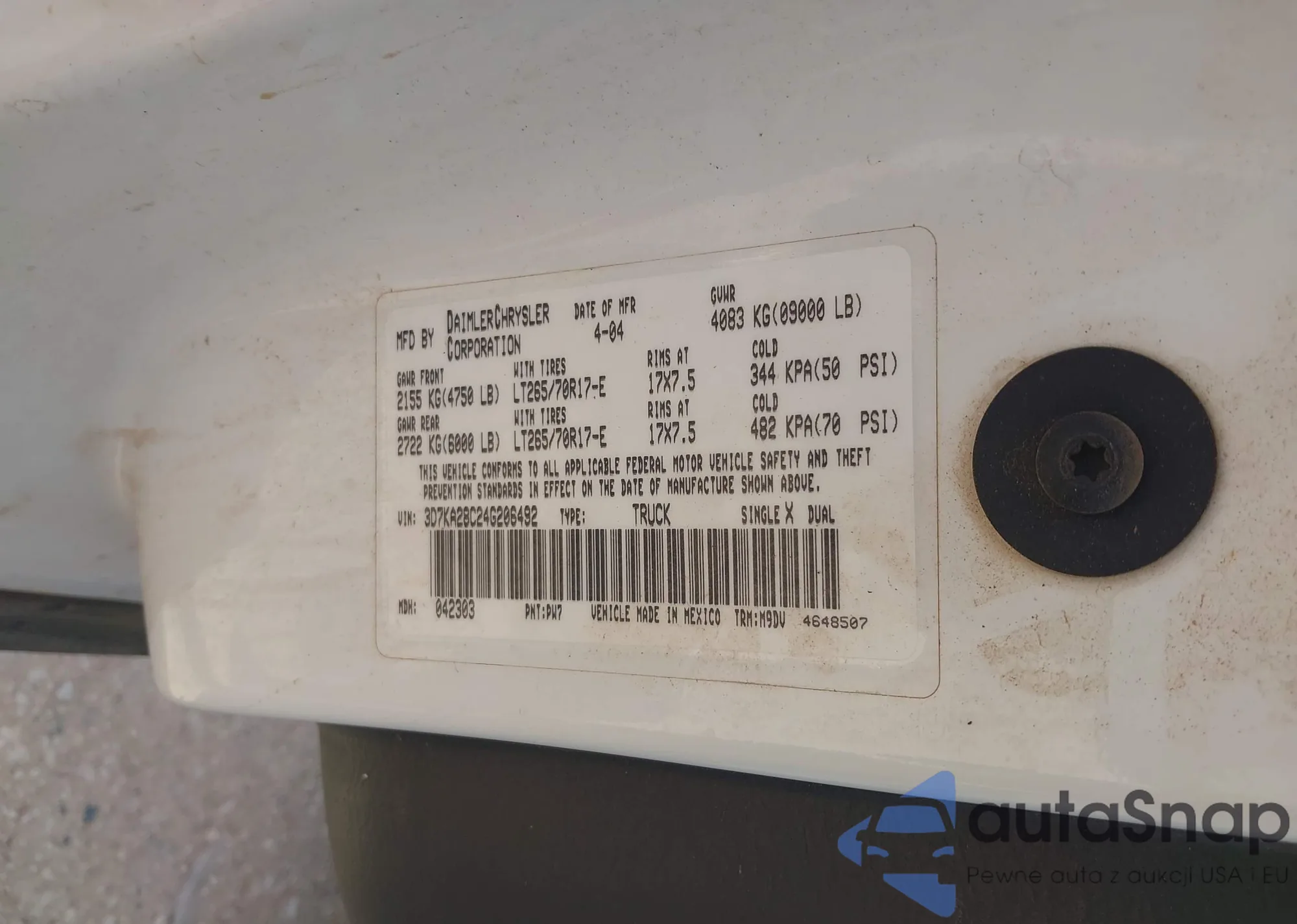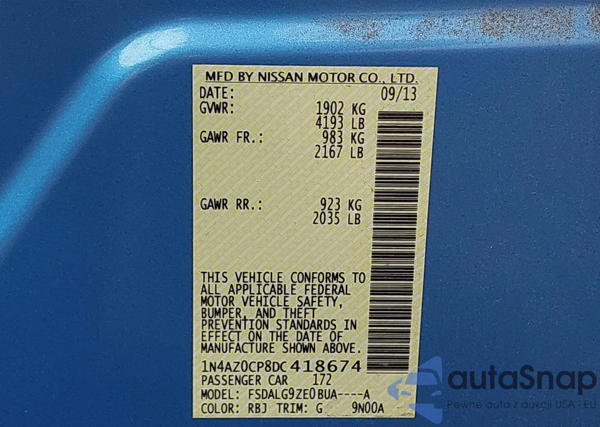 • VIN 1N4AZ0CP8DC418674