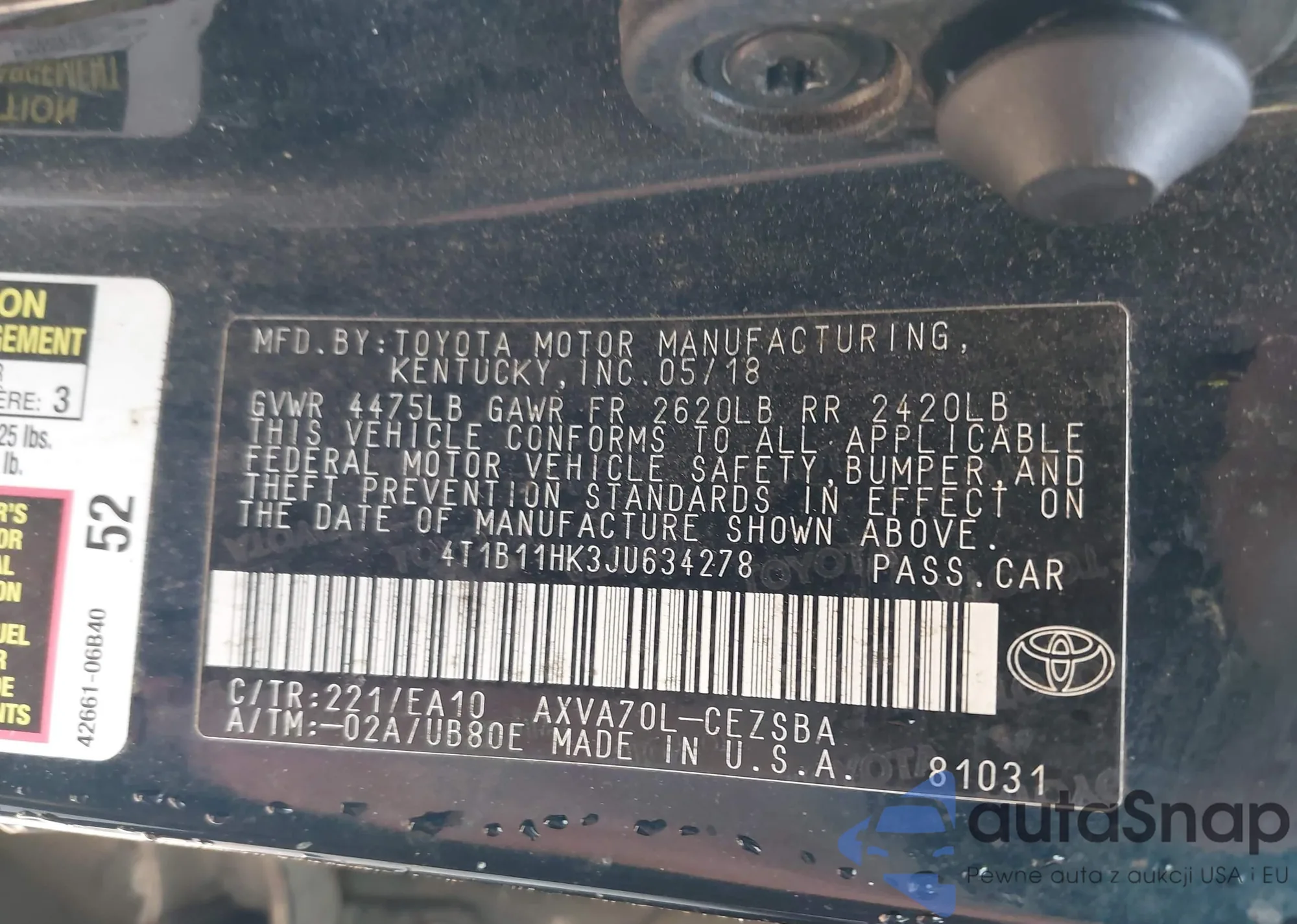 LOT: 43259868 VIN: 4T1B11HK3JU634278