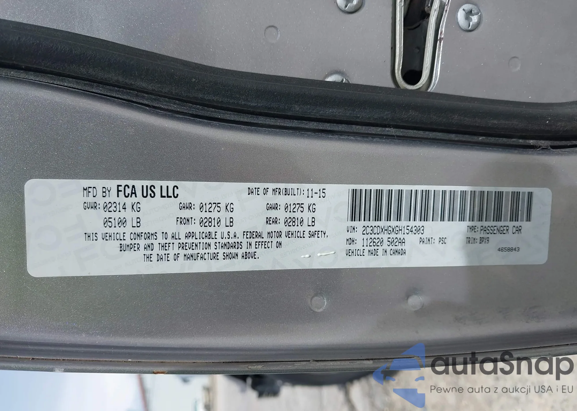 LOT: 42647813 VIN: 2C3CDXHGXGH154303