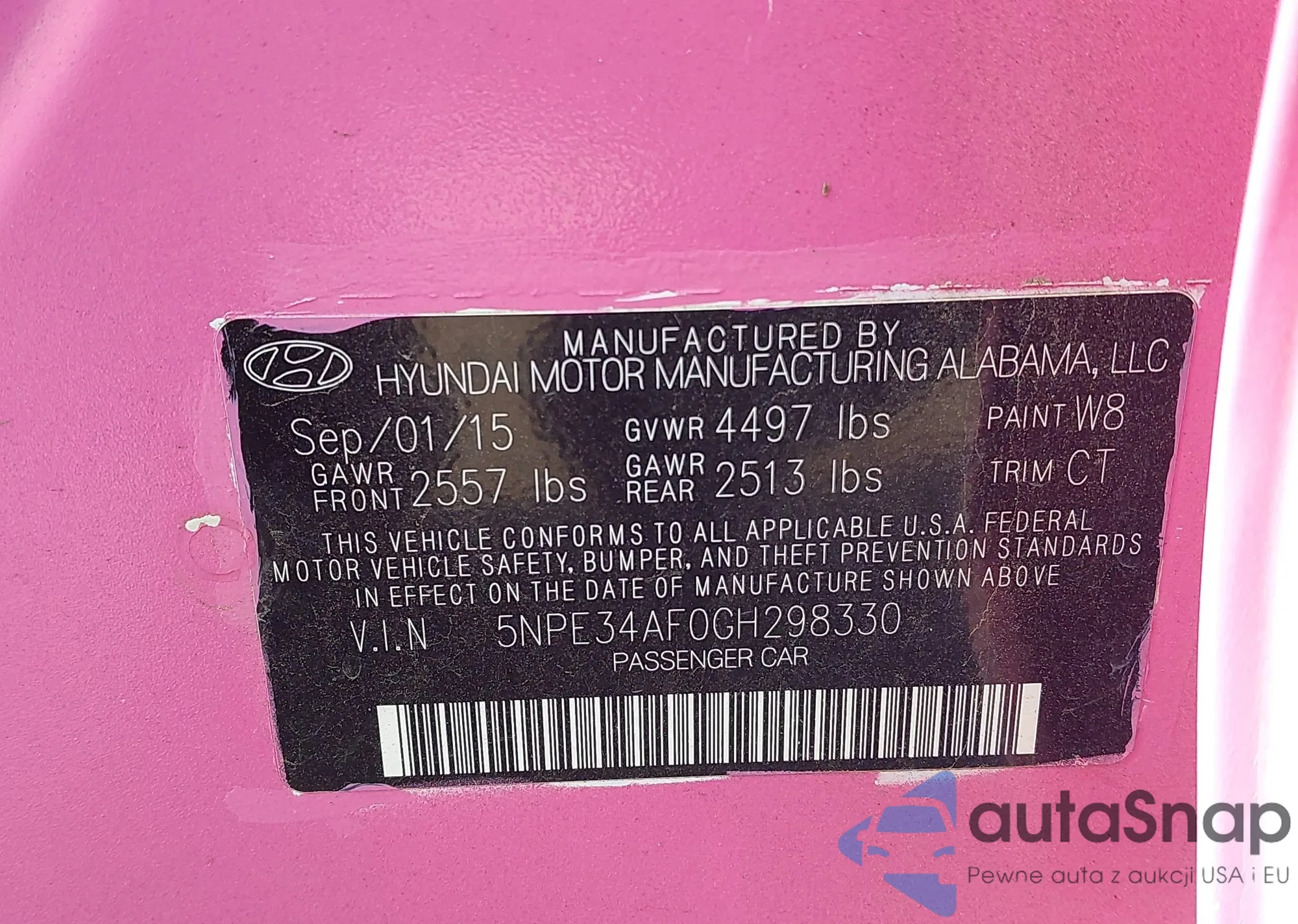 • VIN 5NPE34AF0GH298330