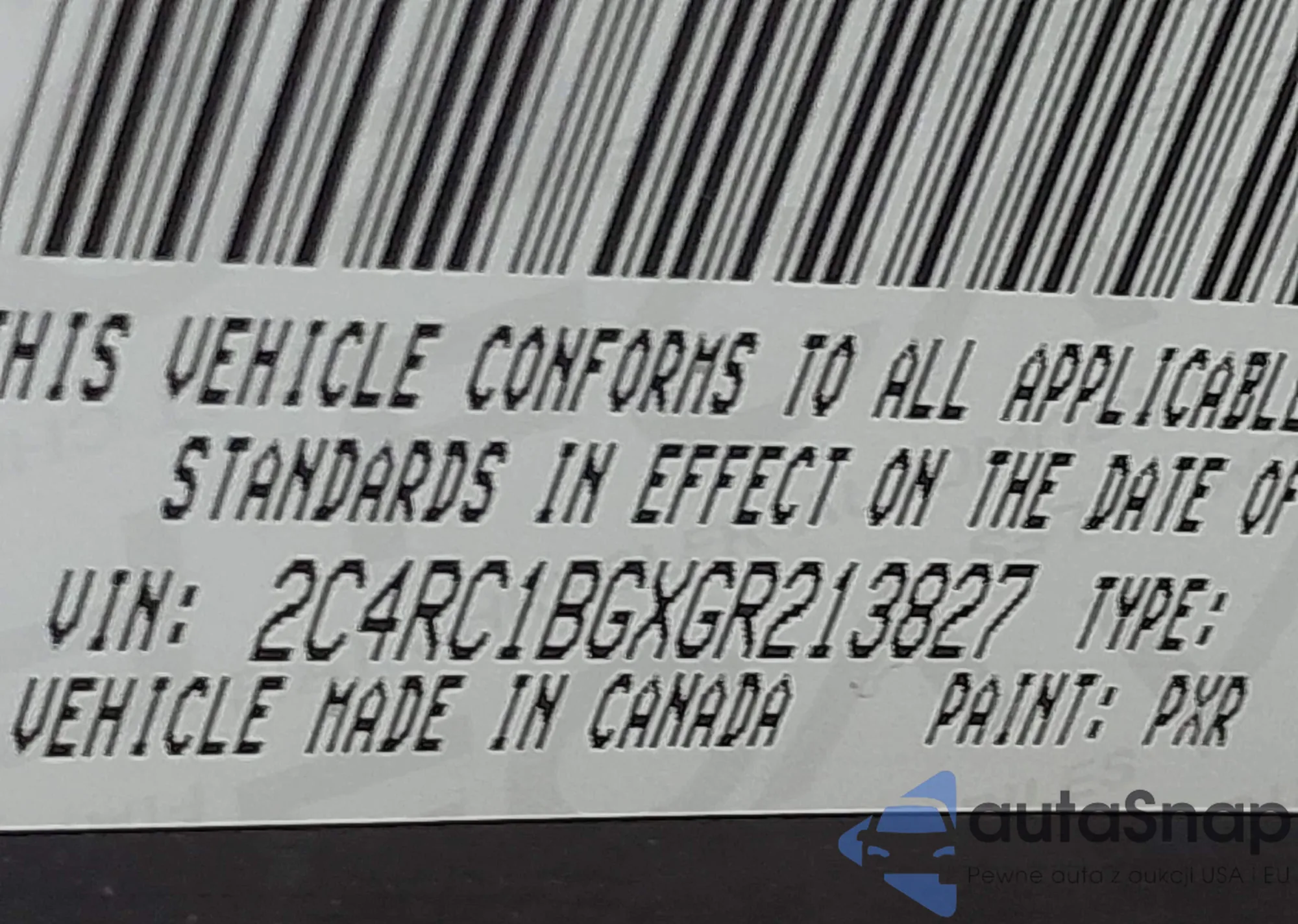 • VIN 2C4RC1BGXGR213827