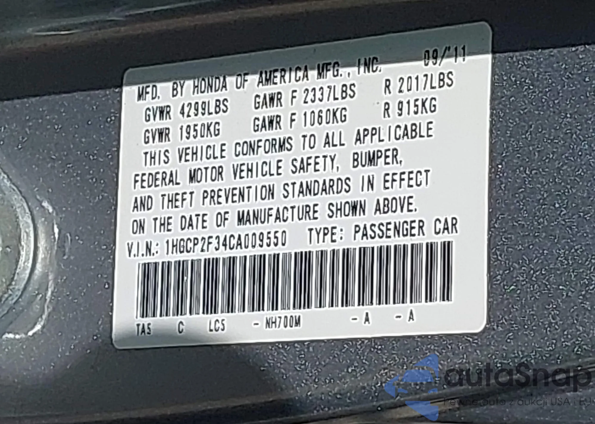 • VIN 1HGCR3F84GA008755