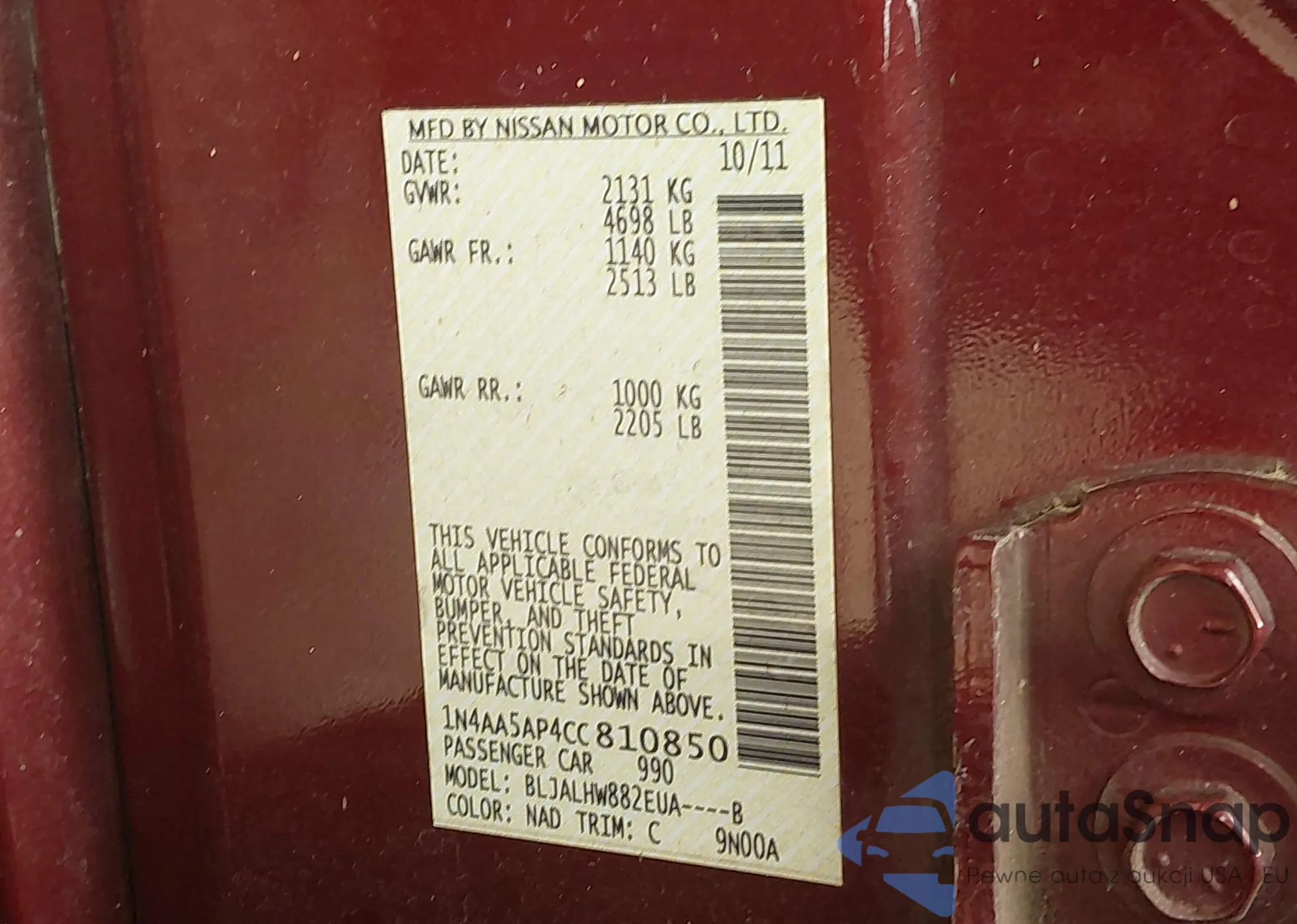 • VIN 1N4AA5AP4CC810850