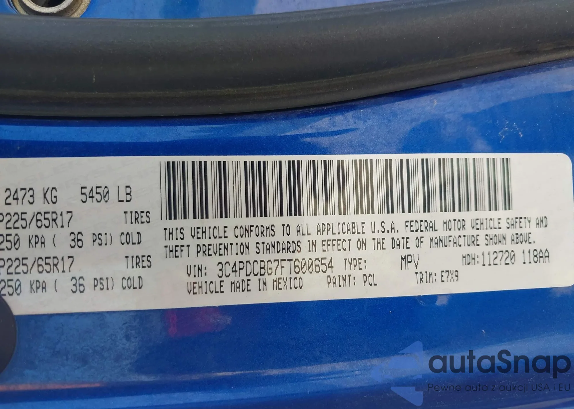 • VIN 3C4PDCBG7FT600654