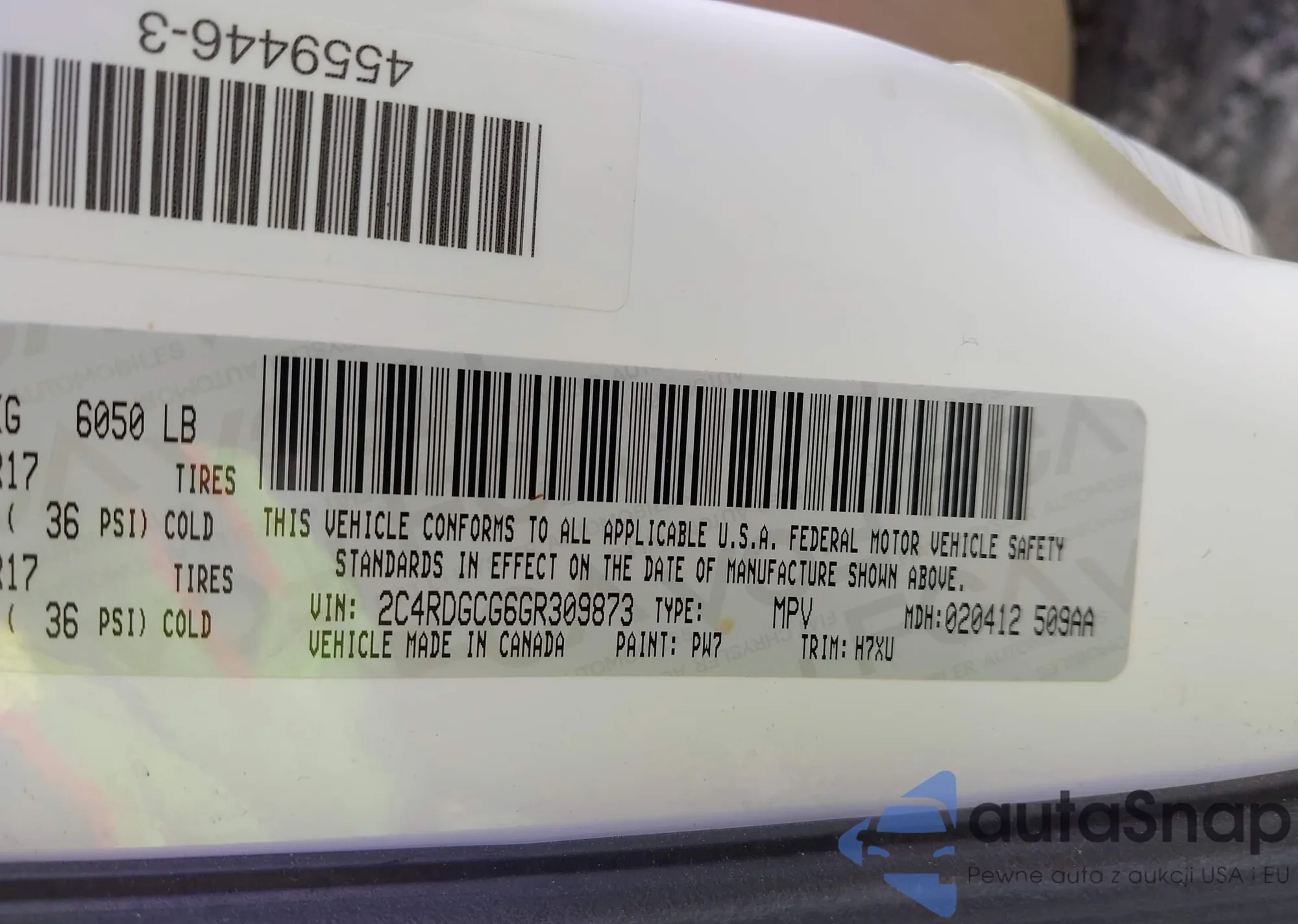 • VIN 2C4RDGCG6GR309873
