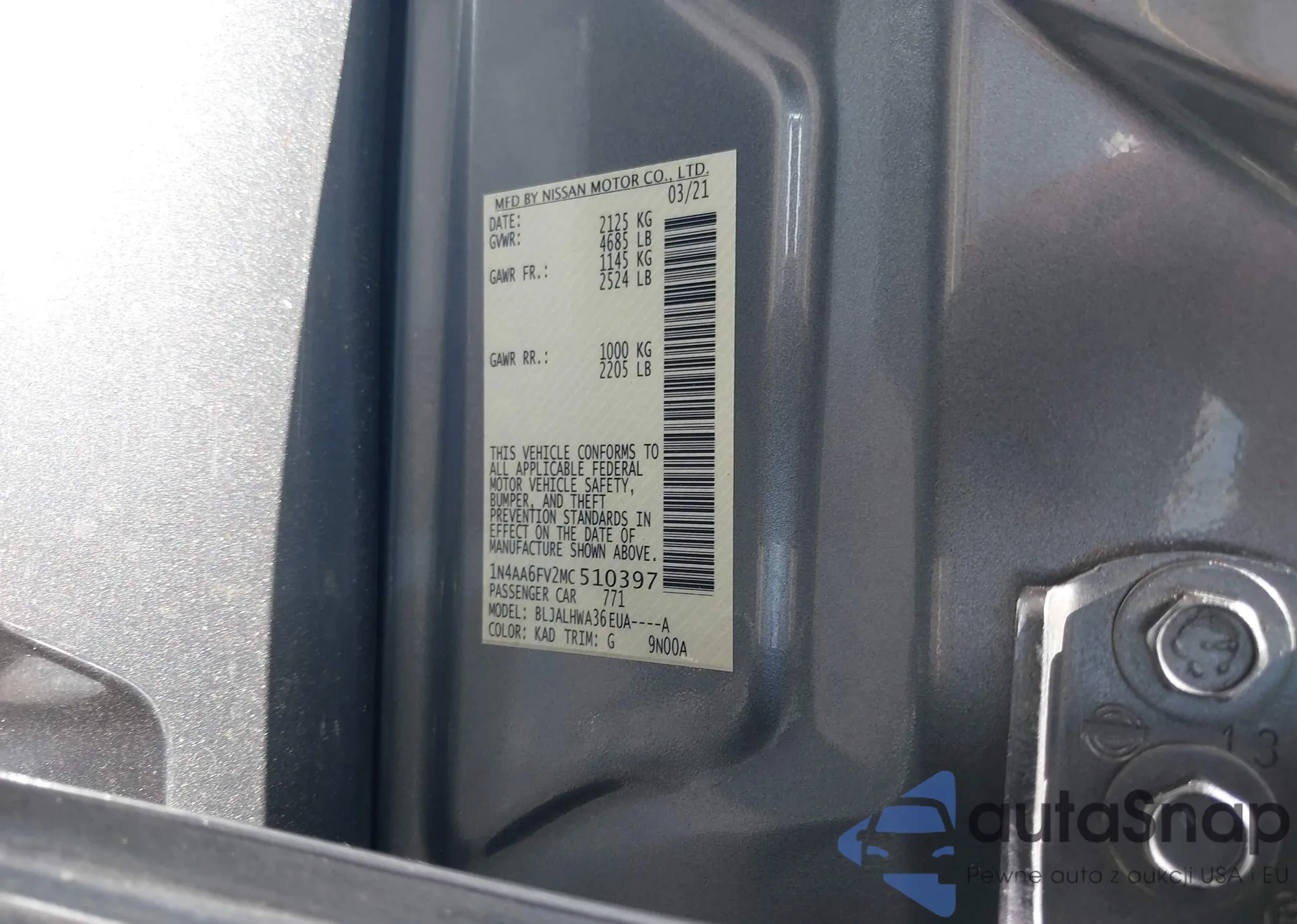 LOT: 42853257 VIN: 1N4AA6FV2MC510397