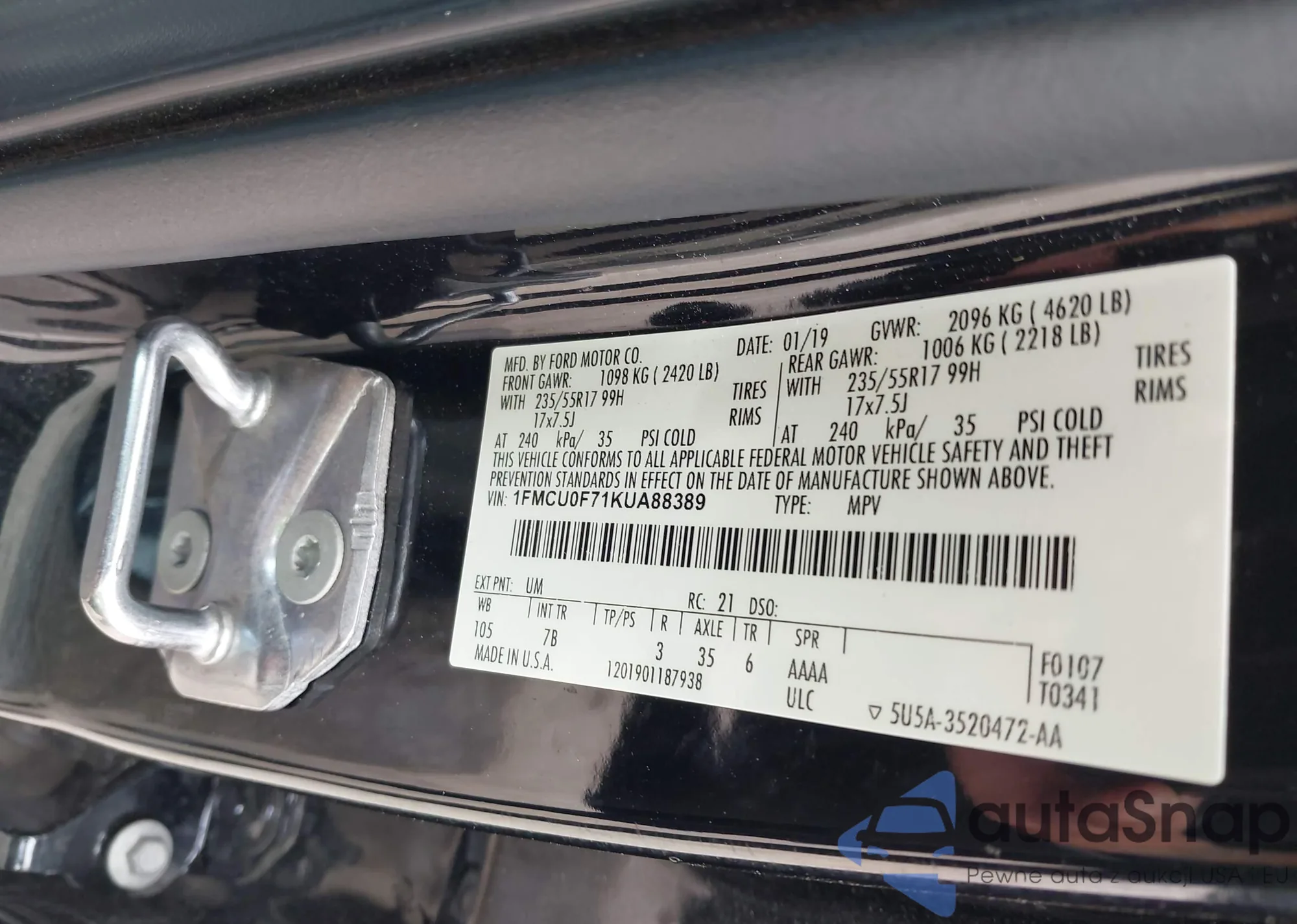 • VIN 1FMCU0F71KUA88389
