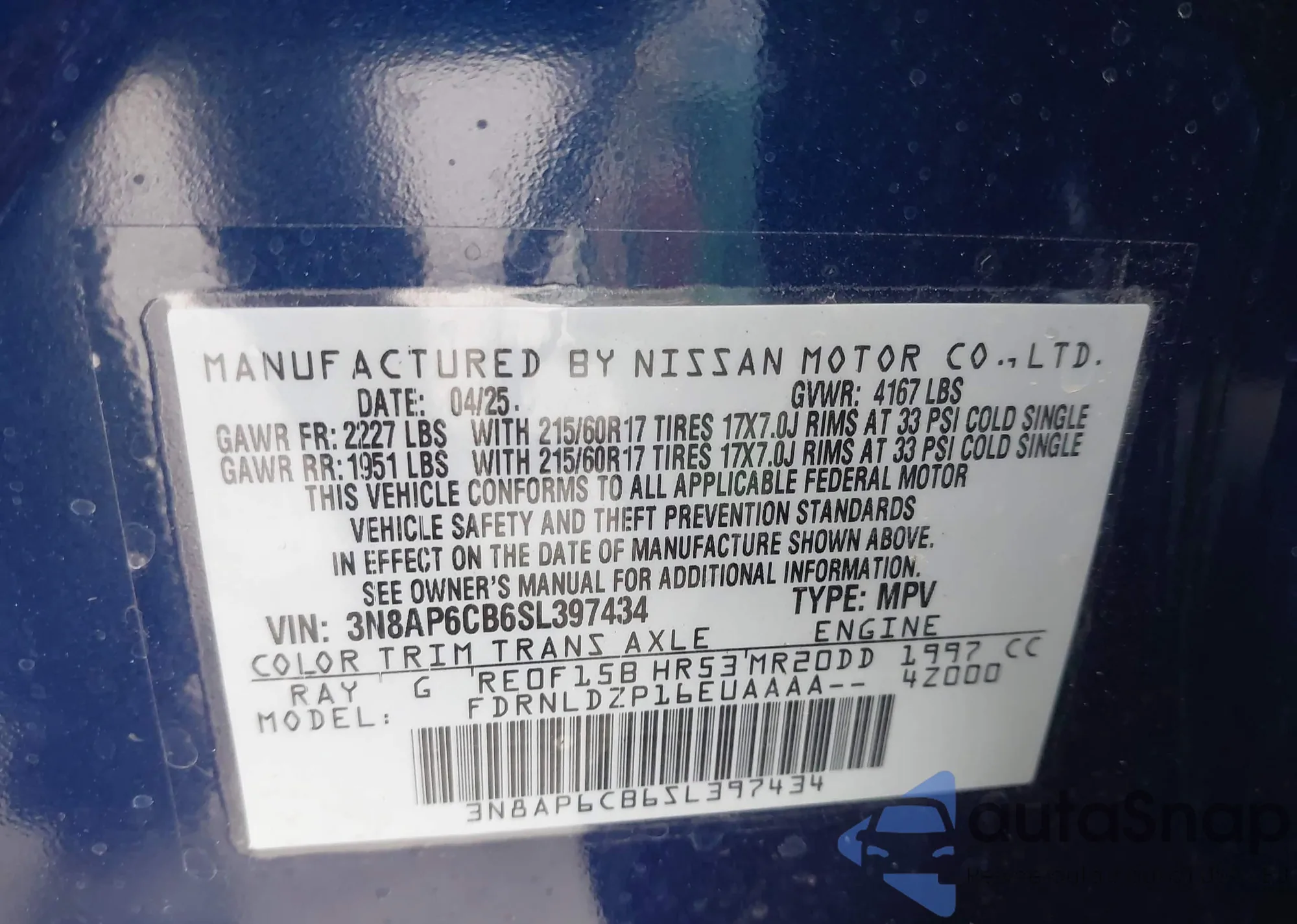 • VIN 1N4AA6FV2MC510397