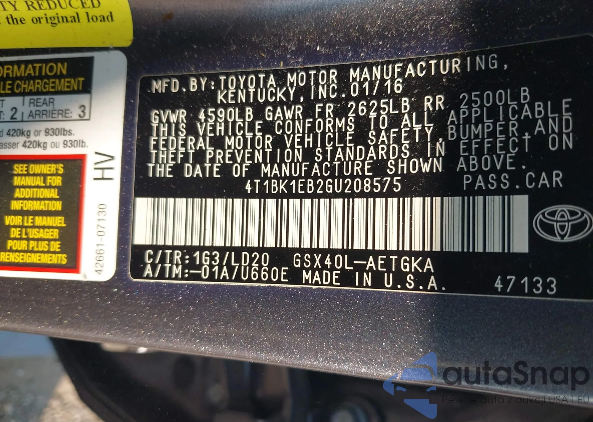 • VIN 4T1BK1EB2GU208575