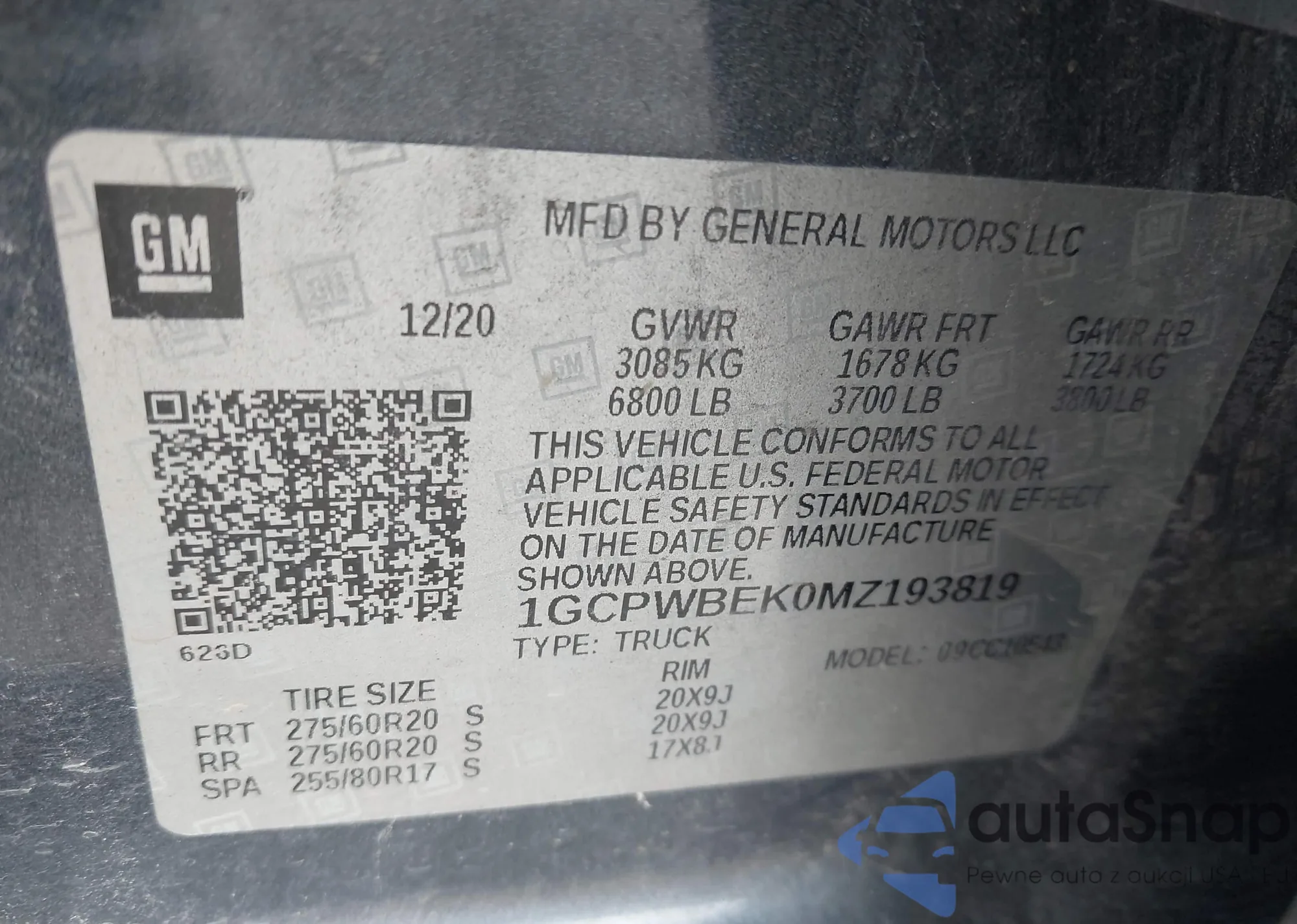 LOT: 43236122 VIN: 1GCPWBEK0MZ193819