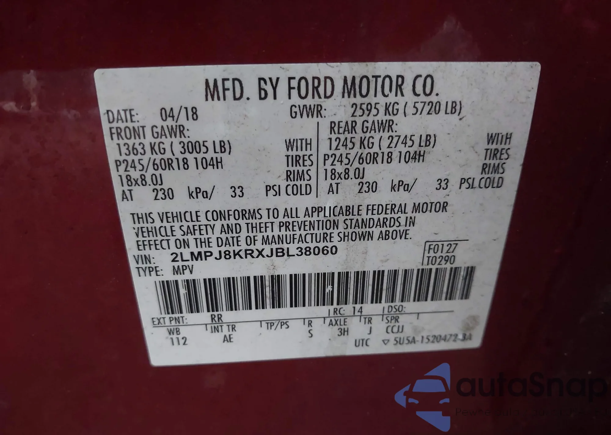 • VIN 2LMPJ8KRXJBL38060