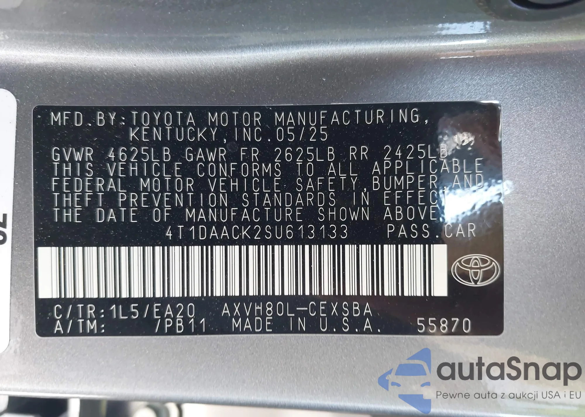 LOT: 43249585 VIN: 4T1DAACK2SU613133