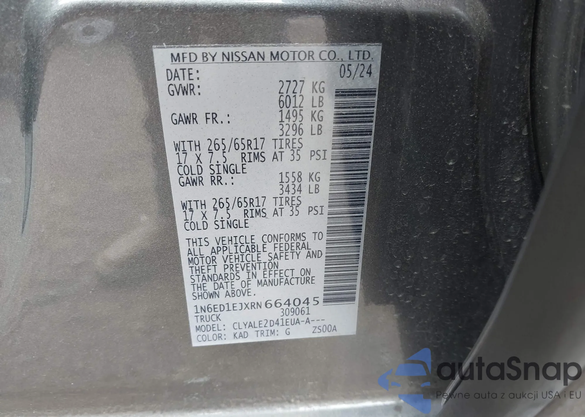 • VIN 1N6ED1EJXRN664045
