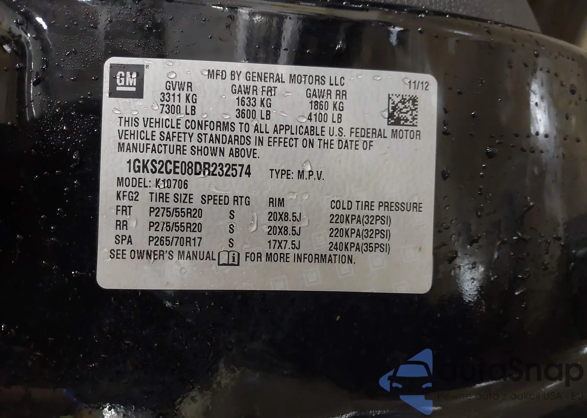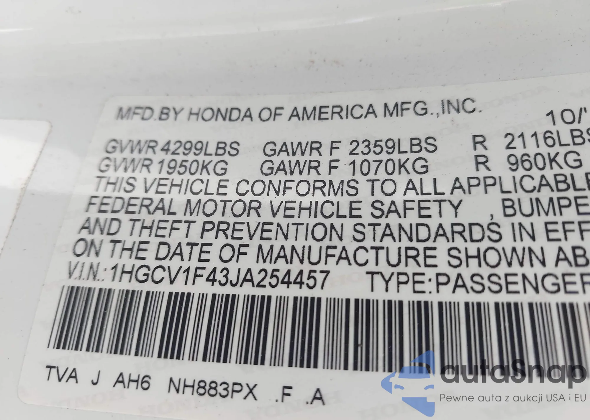 LOT: 43275283 VIN: 5NPEB4AC0DH811211